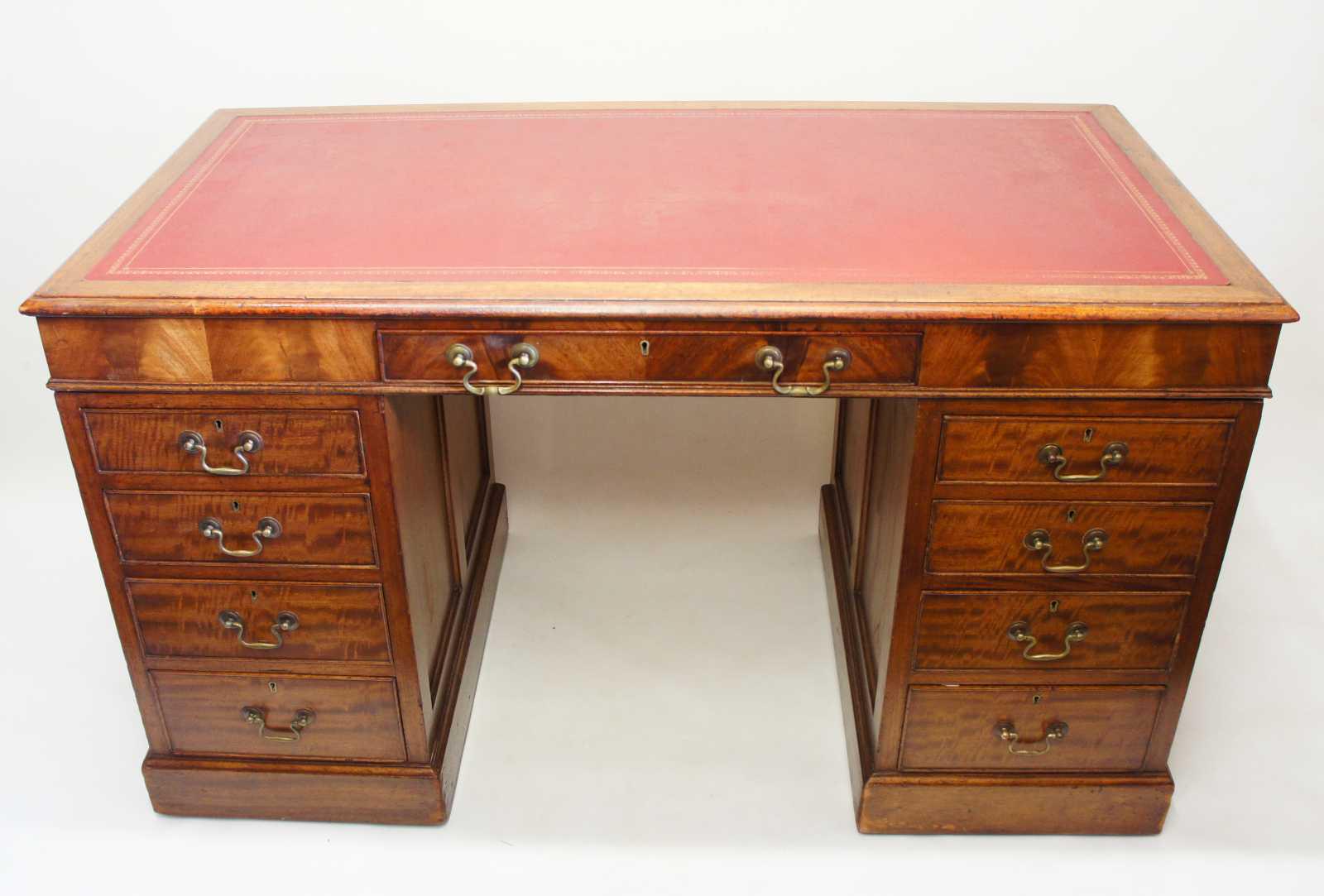 Edwardian Mahogany 9 Drawer Leather Top Pedestal Desk