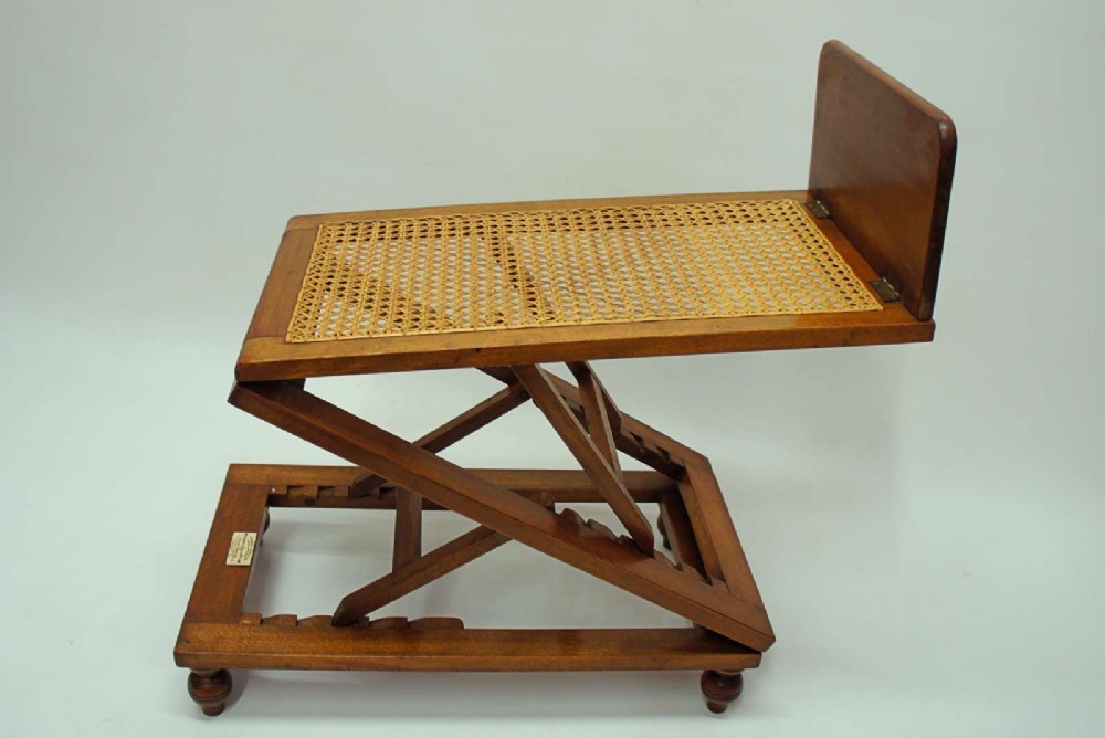 Edwardian Mahogany Adjustable Gout Stool with a Cane Seat - Farmer Lane & Co