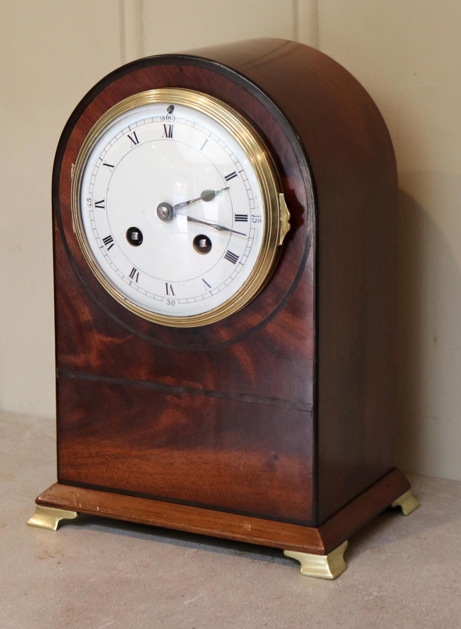 Edwardian Mahogany Arch Top Mantel Clock