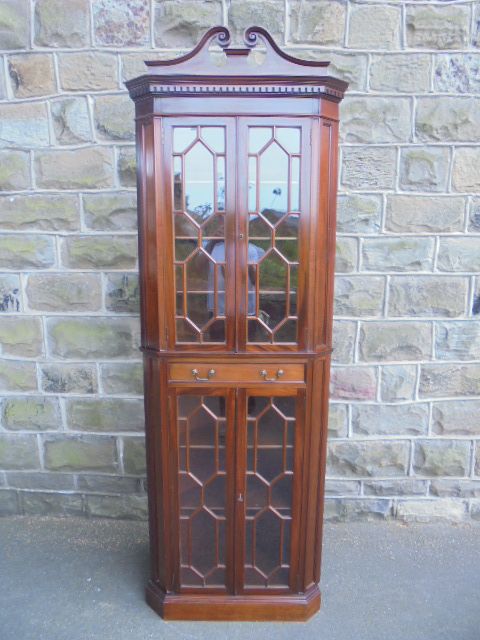 Edwardian Mahogany Astro-Glazed Corner Cabinet / Bookcase c.1900