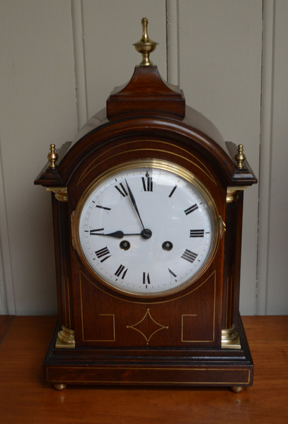 Edwardian Mahogany & Brass Inlay Striking Bracket Clock, England & France c.1910 (1 of 1)