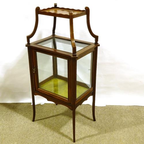 Edwardian Mahogany Centre Standing Display Cabinet with Shelf Above