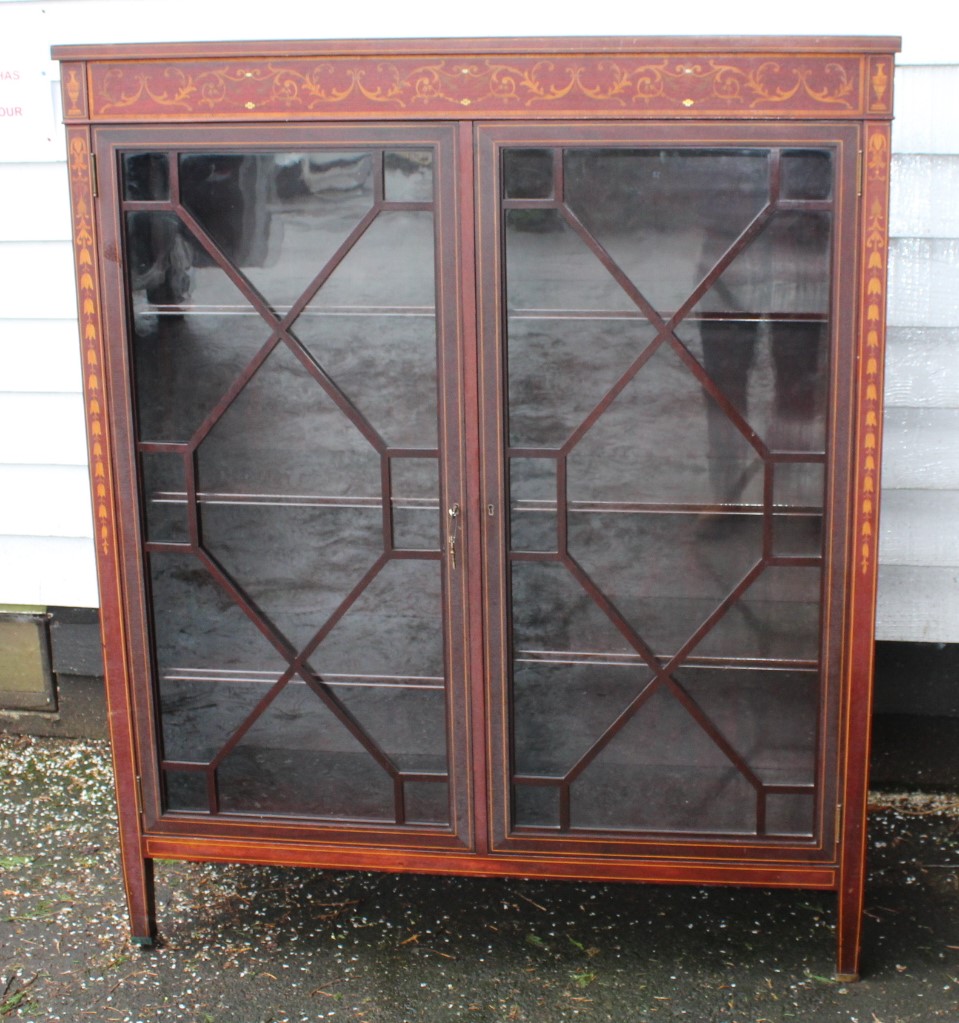 Edwardian Mahogany China Cabinet with Inlay c.1910