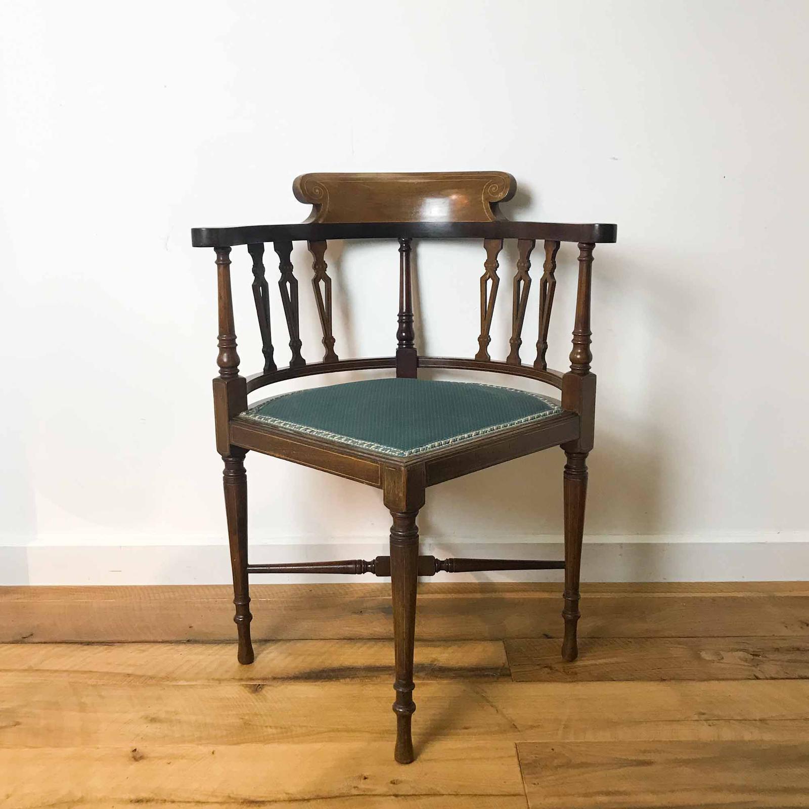 Edwardian Mahogany Corner Chair with Teal Upholstered Seat