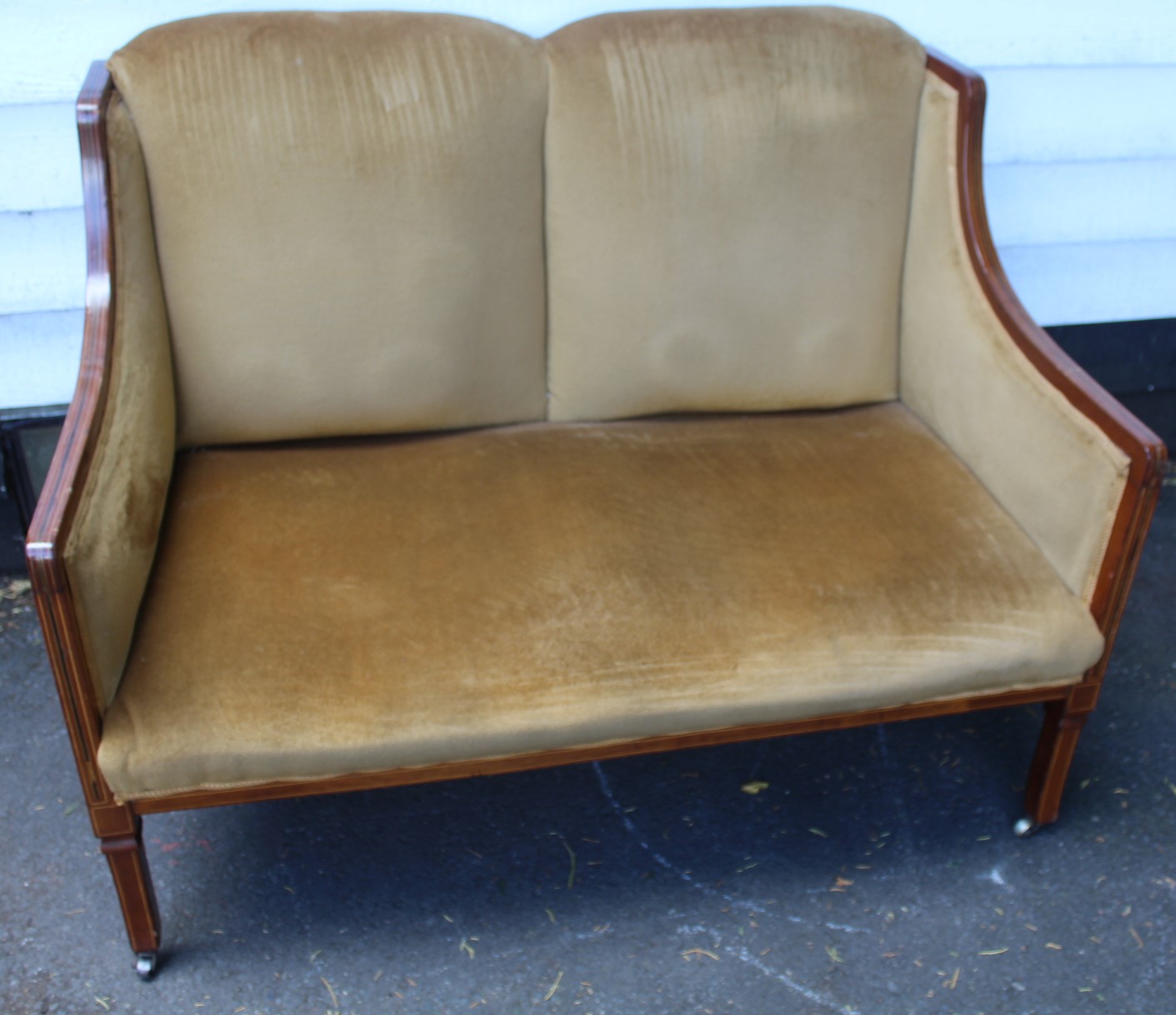 Edwardian Mahogany Framed 2 Seater Sofa with Inlay Gold Fabric