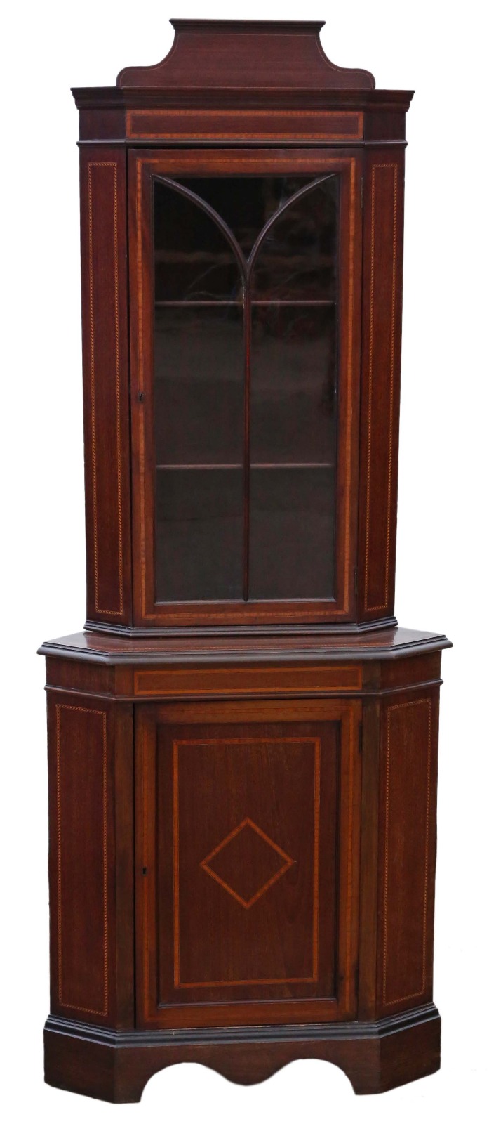 Edwardian Mahogany Glazed Corner Cupboard Display Cabinet