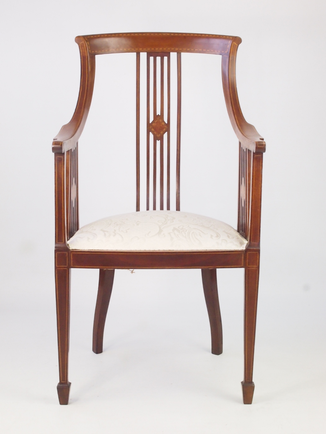 Edwardian Mahogany & Inlaid Armchair / Tub Chair c.1910 (1 of 1)