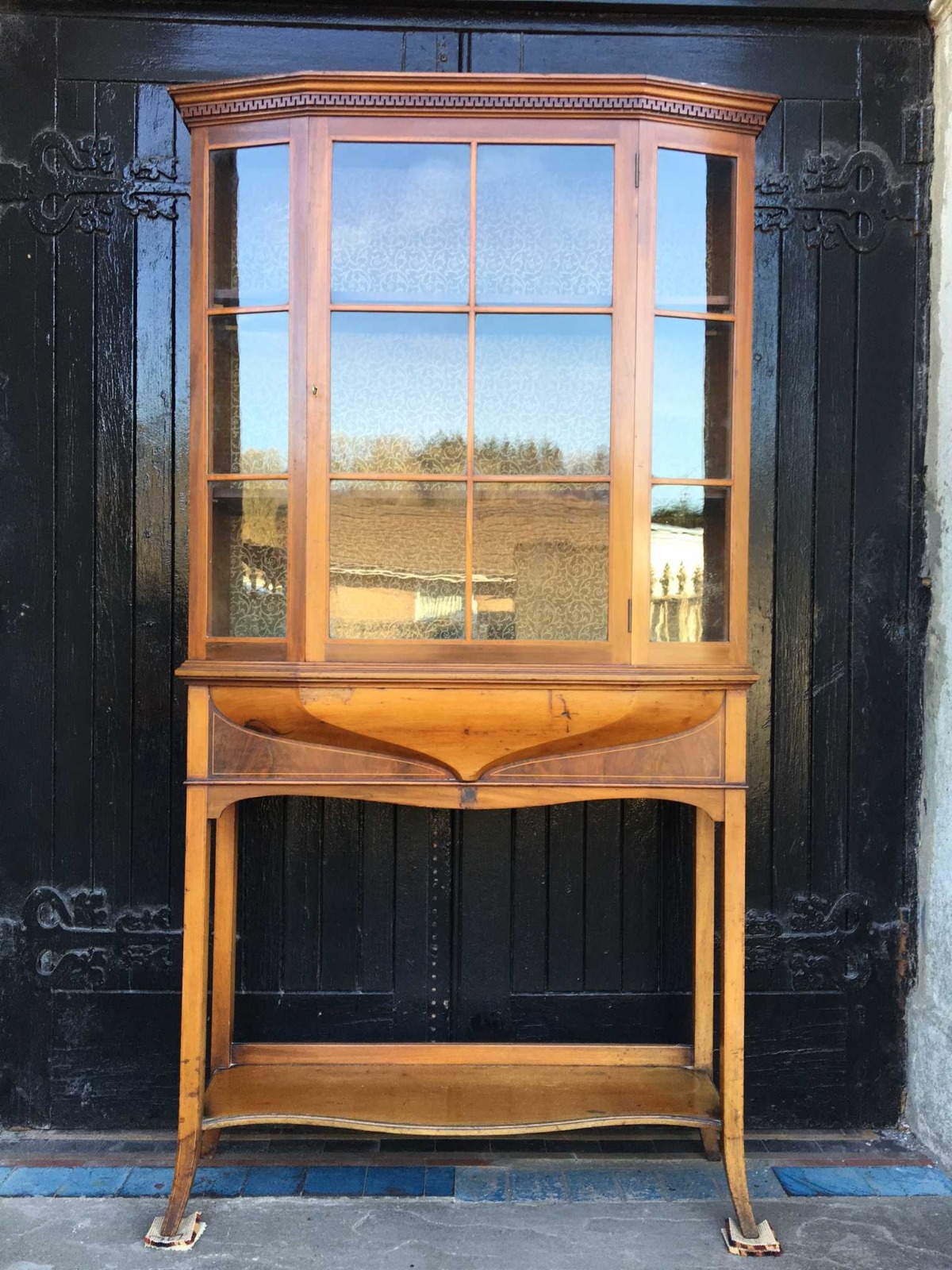 Edwardian Mahogany Inlaid Breakfront Display Cabinet