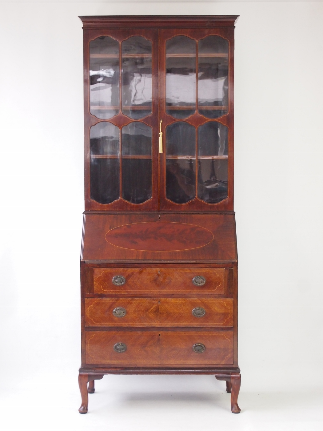 Edwardian Mahogany & Inlaid Bureau Bookcase c.1910 (1 of 1)