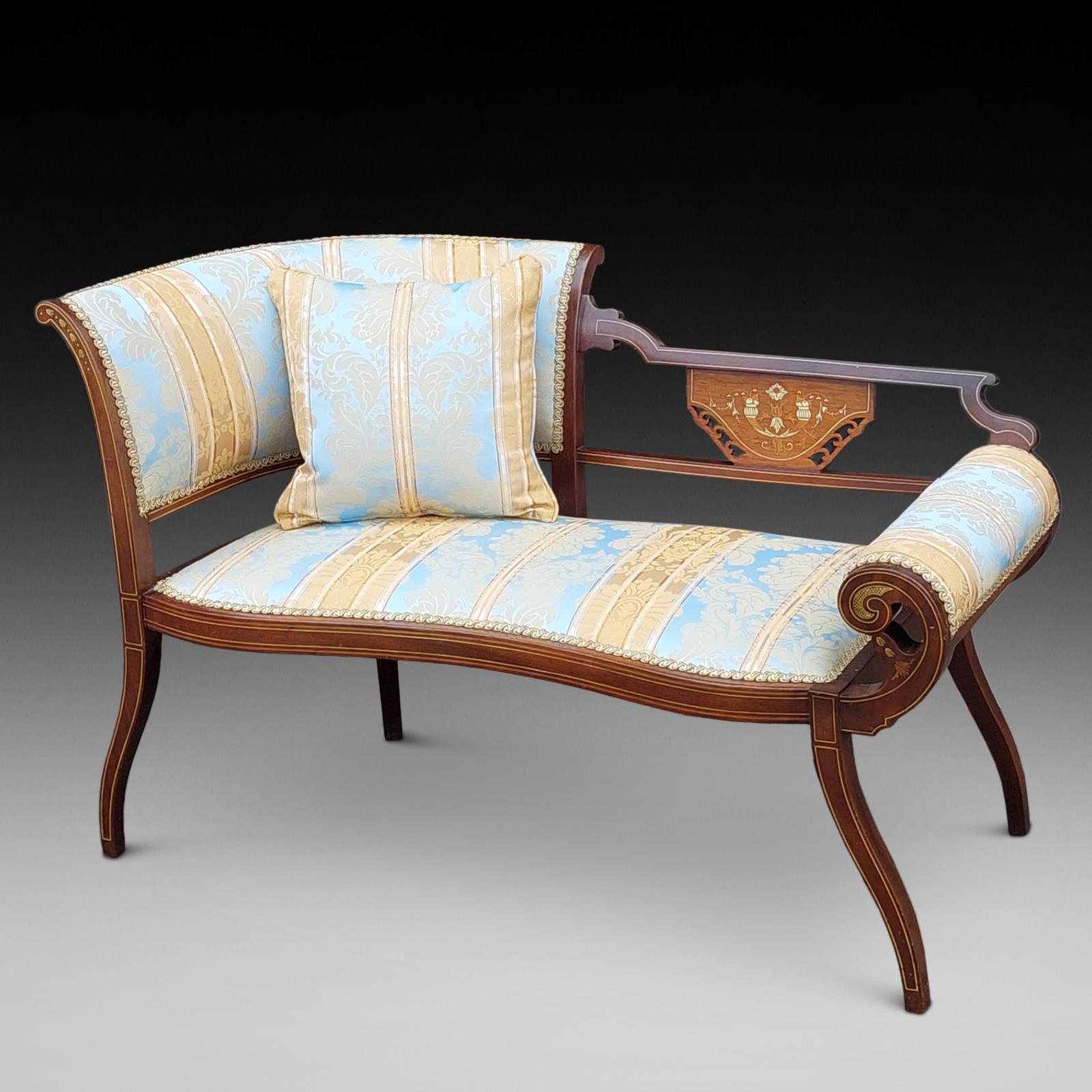 Edwardian Mahogany & Inlaid Chaise Longue