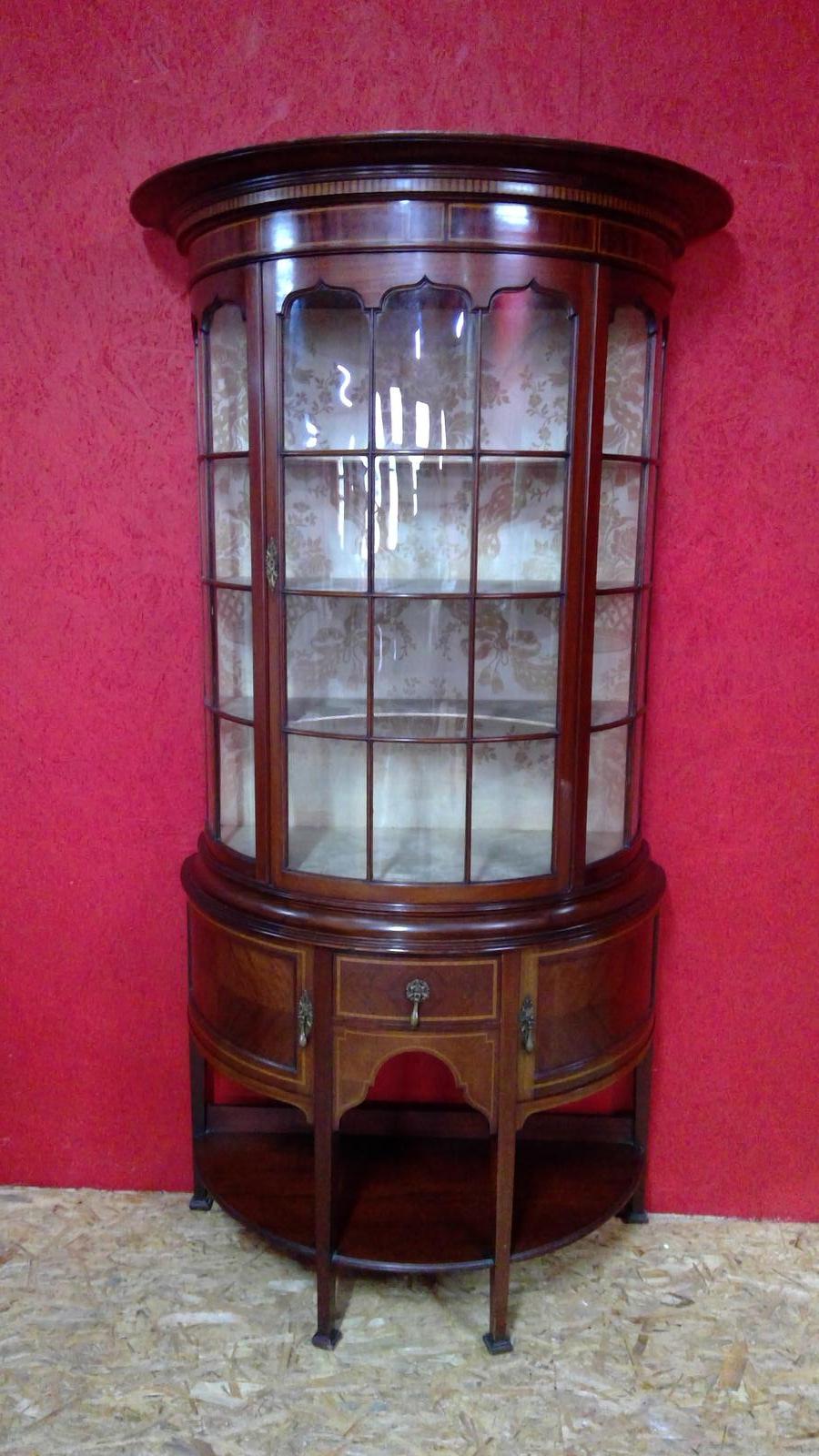 Edwardian Mahogany Inlaid Demi-lune Shaped Display Cabinet