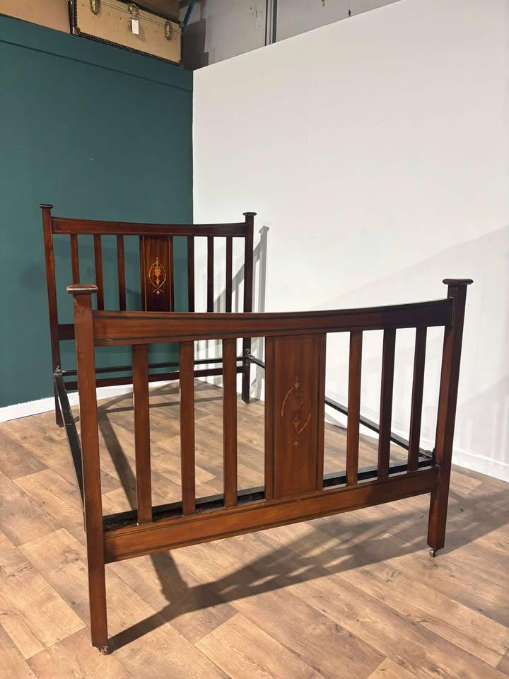 Edwardian Mahogany Inlaid Double Bed Stead