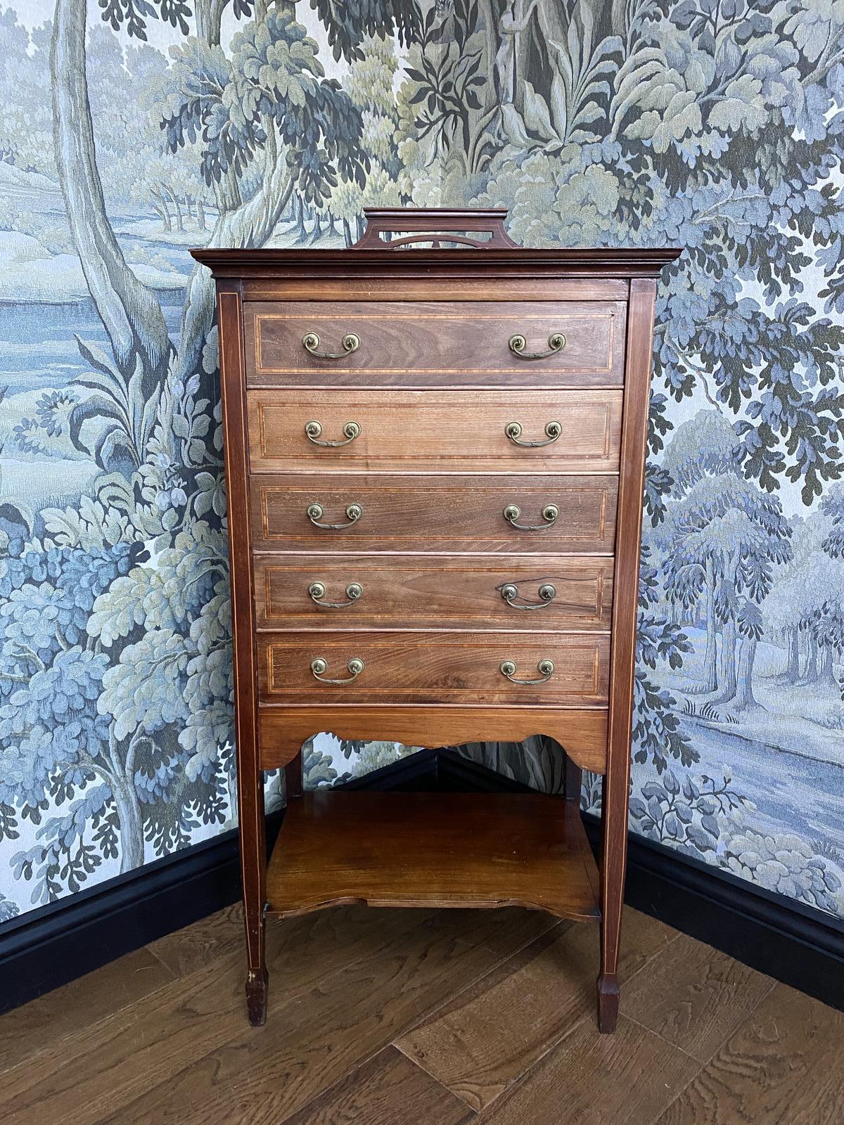 Edwardian Mahogany & Inlaid Five Drawer Music Cabinet