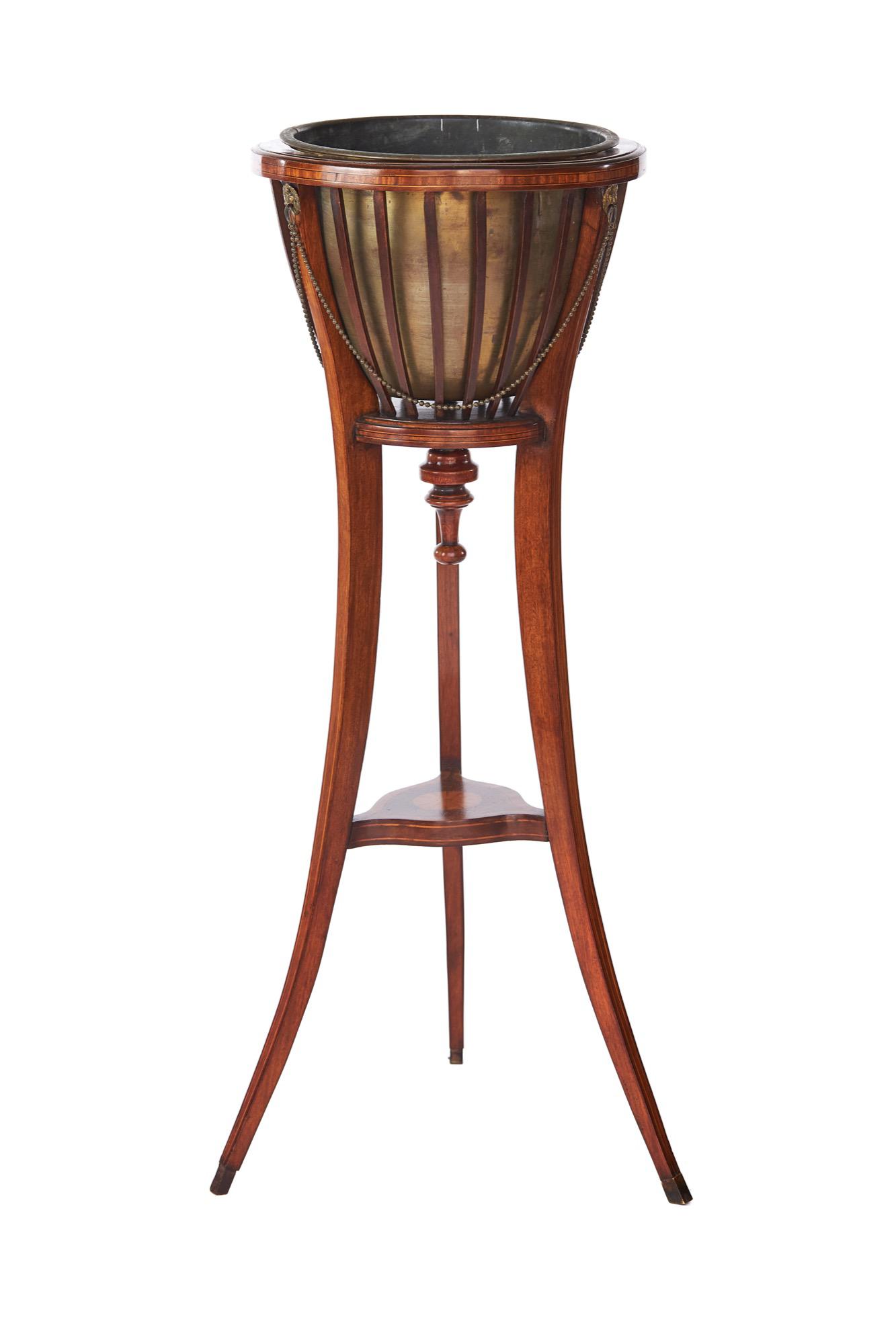 Edwardian Mahogany Inlaid Jardiniere / Plant Stand