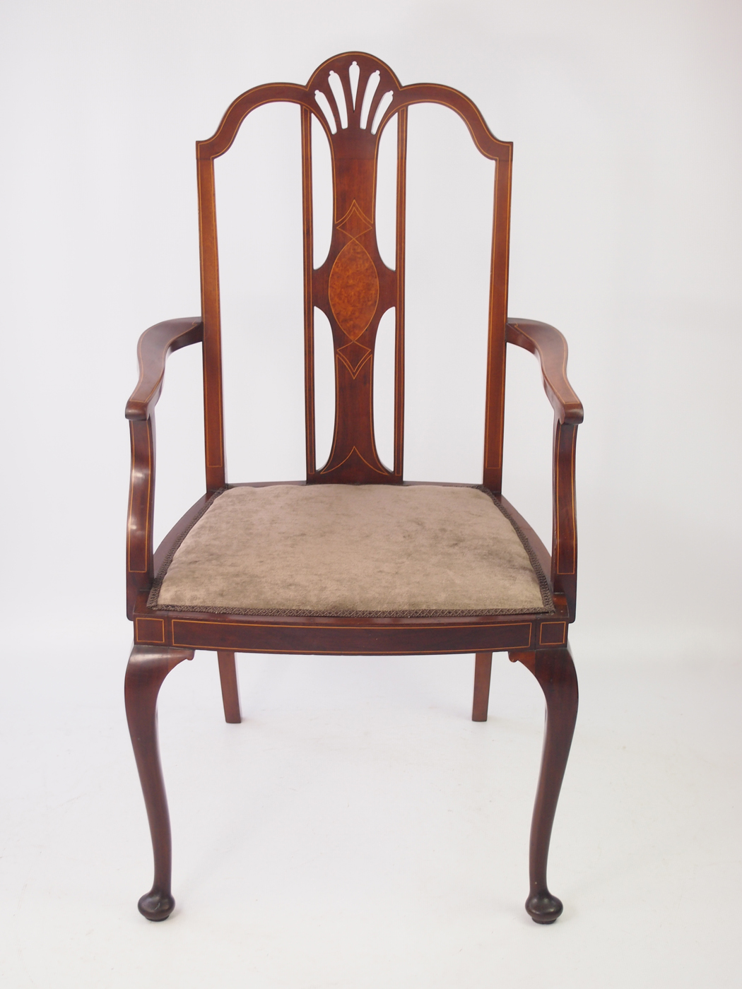 Edwardian Mahogany & Inlaid Open Armchair (1 of 1)