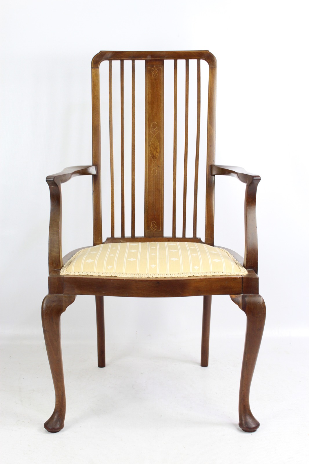 Edwardian Mahogany & Inlaid Open Armchair (1 of 1)