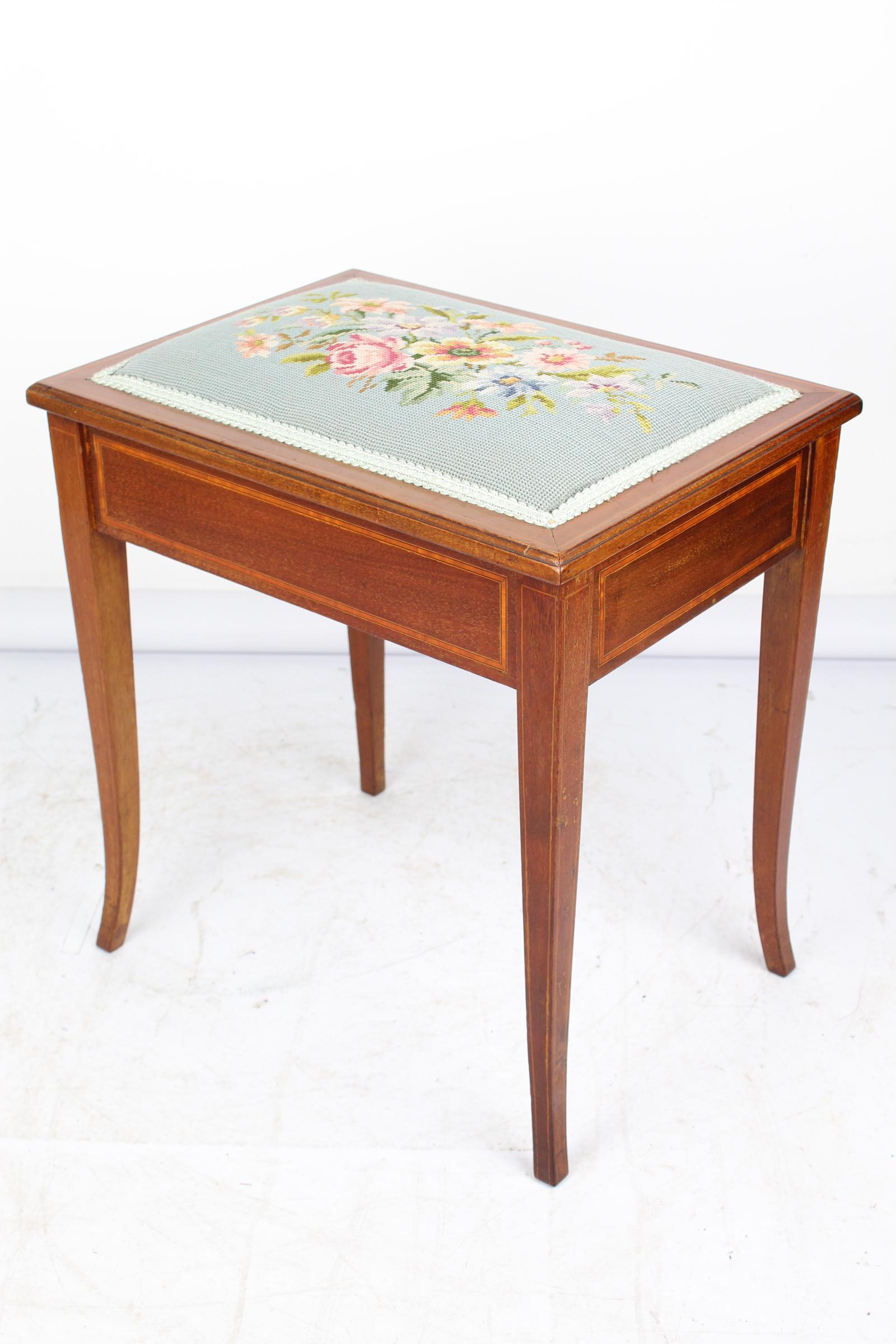 Edwardian Mahogany & Inlaid Piano Stool (1 of 8)