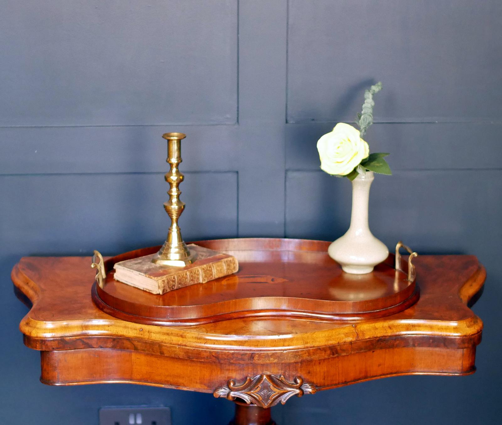 Capture the grace of a bygone era with this stunning Edwardian kidney-shaped tea tray. More than just a functional piece, this tray is a celebration of early 20th-century refinement, designed to turn a simple afternoon tea into an elegant occasion.
