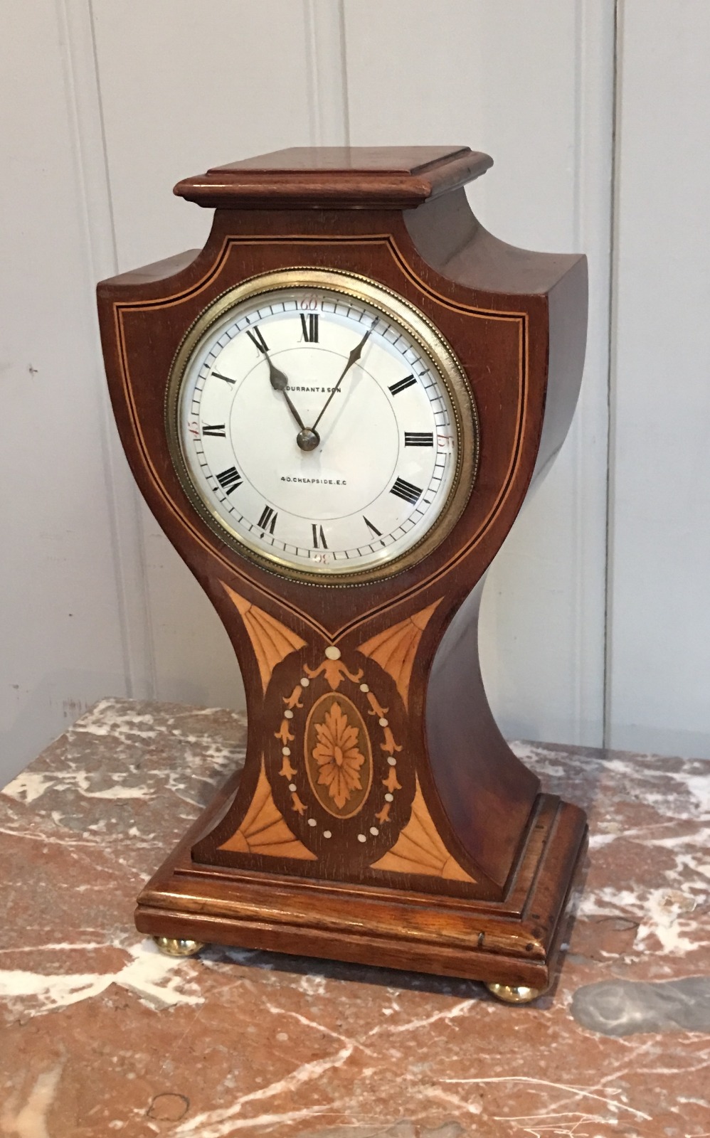 Edwardian Mahogany & Inlay Balloon Clock c.1905 (England & France)