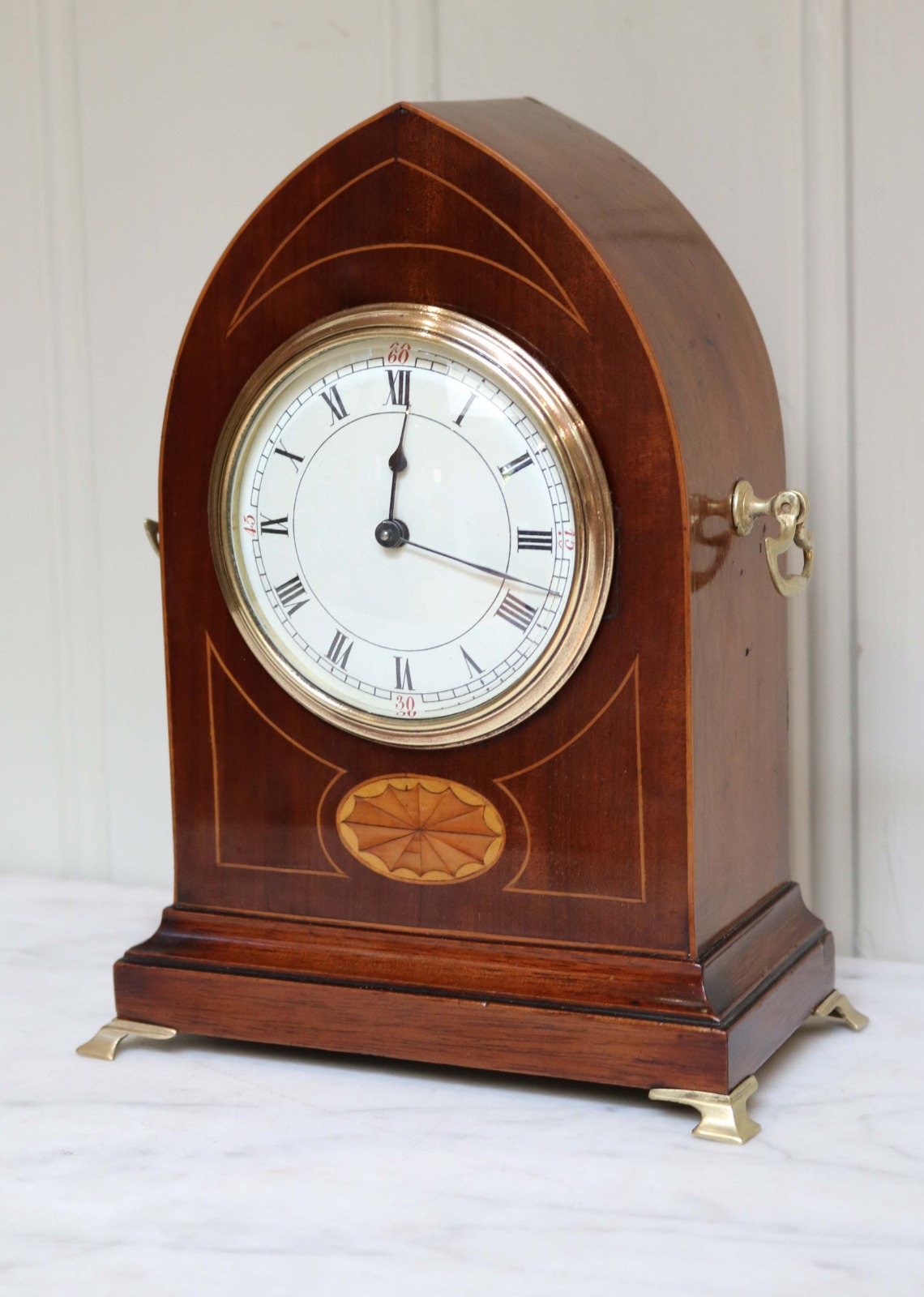 Edwardian Mahogany & Inlay Lancet Top Mantel Clock, England & France c.1905 (1 of 1)