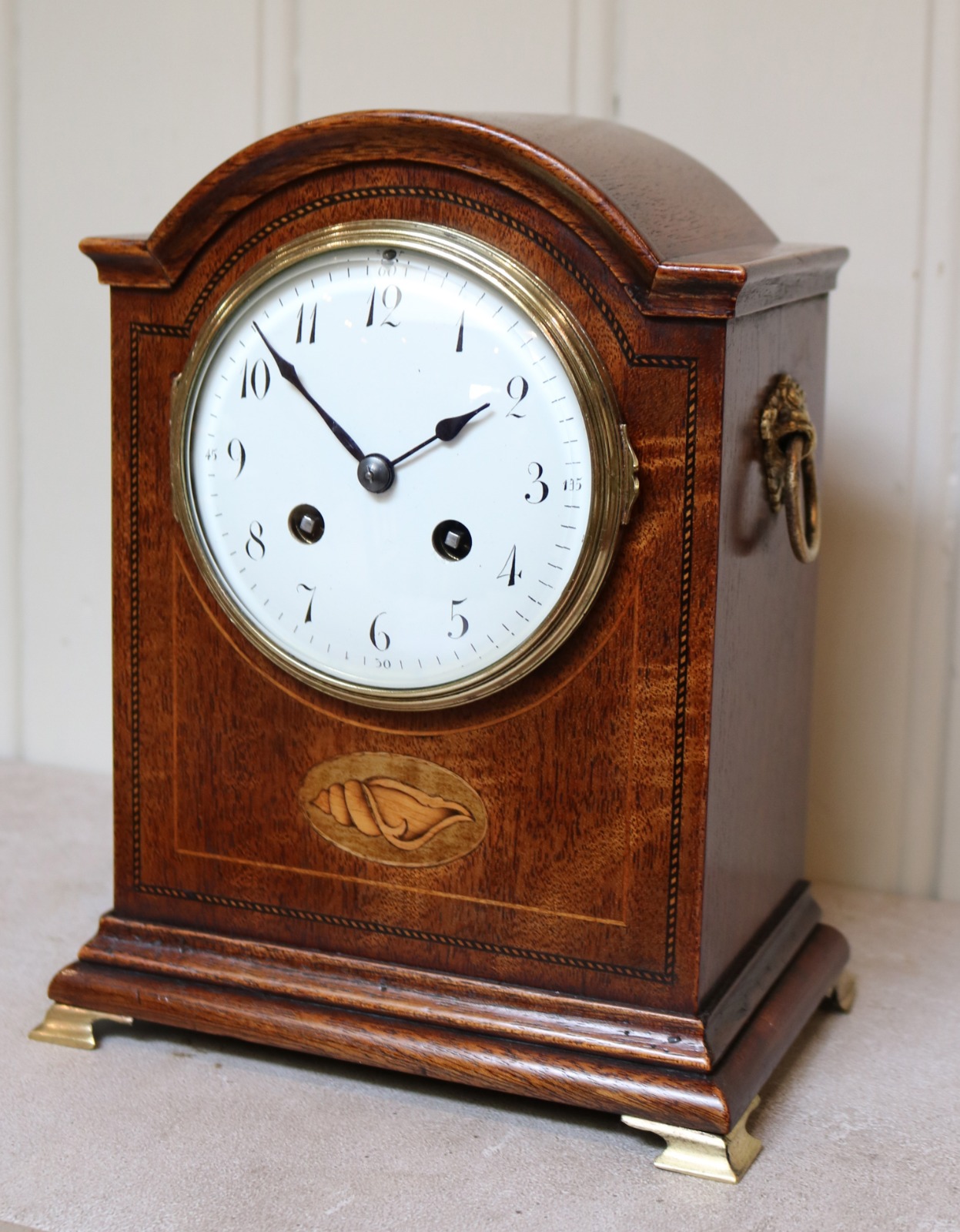 Edwardian Mahogany & Inlay Mantel Clock (1 of 1)