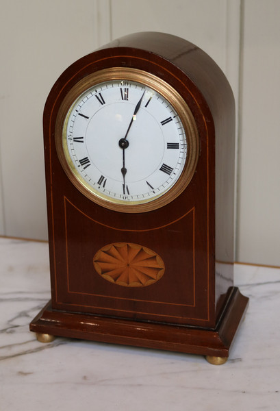 Edwardian Mahogany & Inlay Mantel Clock, England & Switzerland c.1905 (1 of 1)