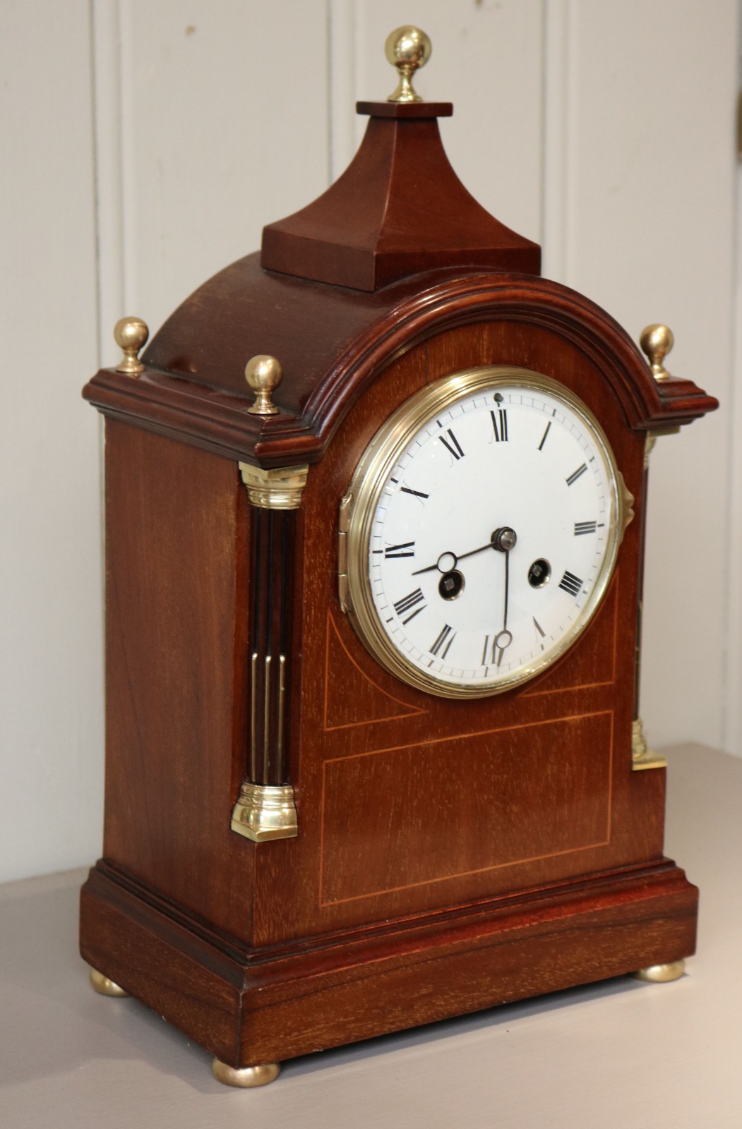 Edwardian Mahogany & Inlay Striking Mantel Clock, 'England & France' c.1905 (1 of 1)