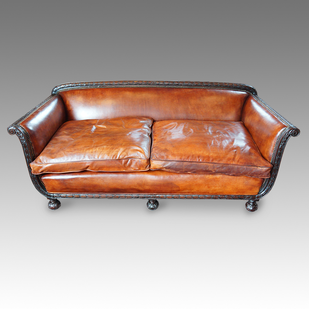 Edwardian Mahogany Leather Sofa (1 of 1)