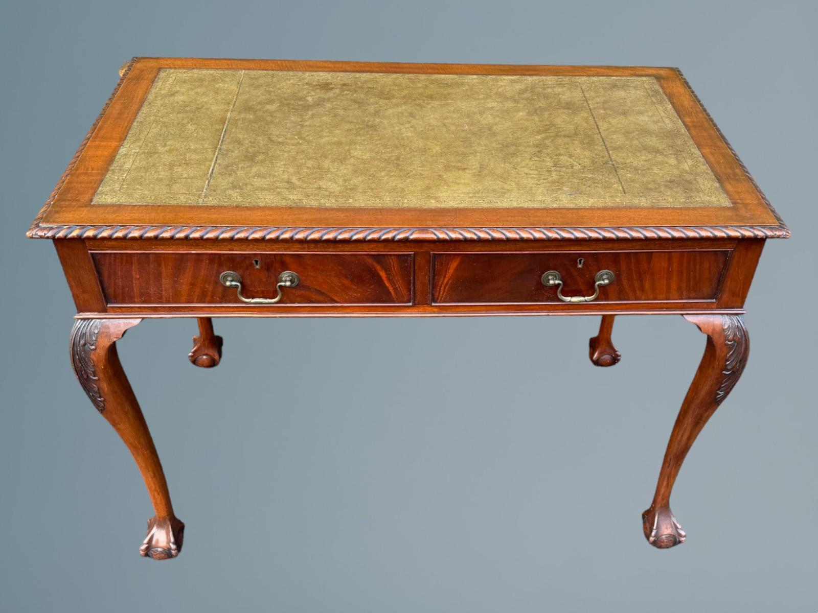 Edwardian Mahogany Leather Top Writing Table in the Chippendale Style (1 of 16)