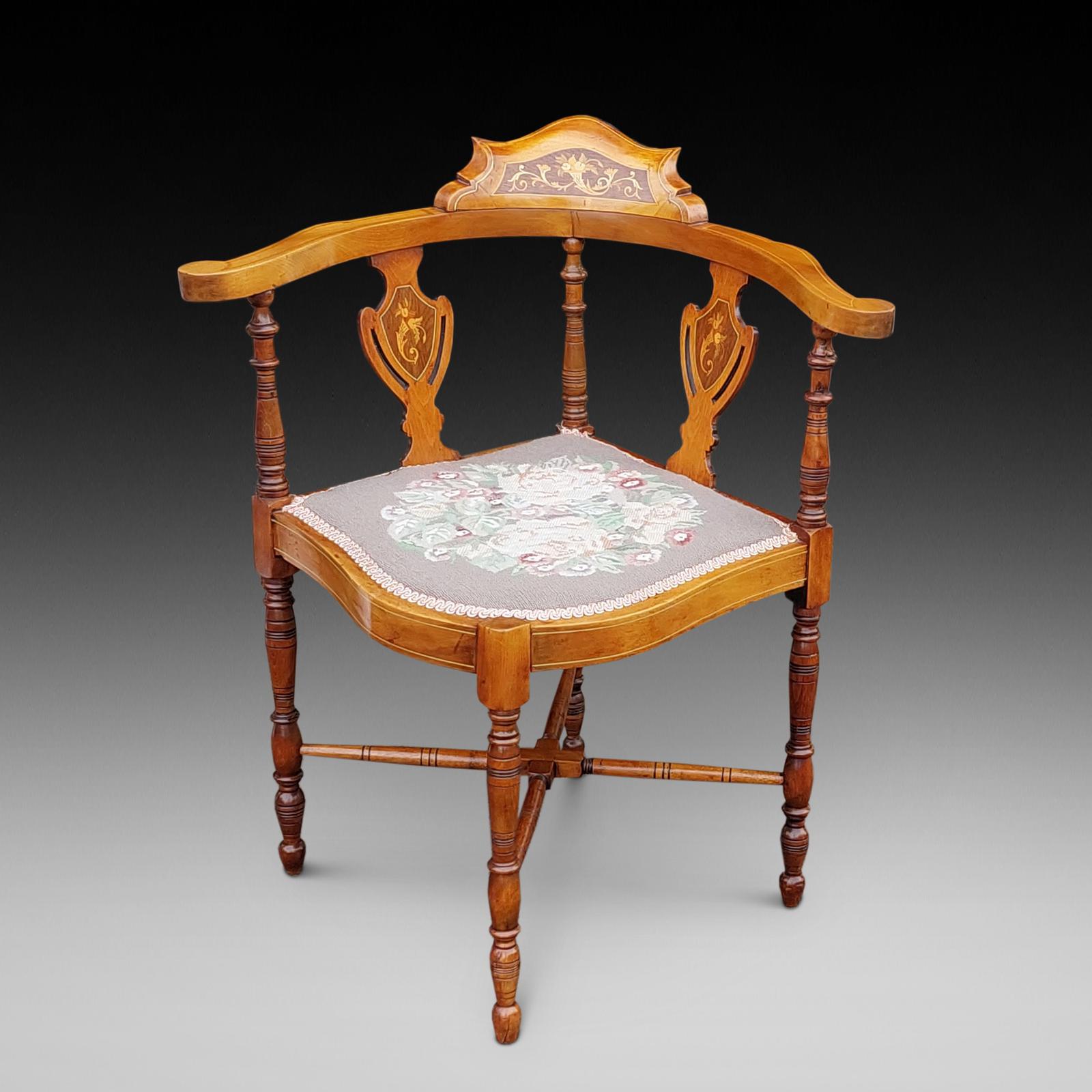 Edwardian Mahogany & Parquetry Inlaid Corner Chair (1 of 8)