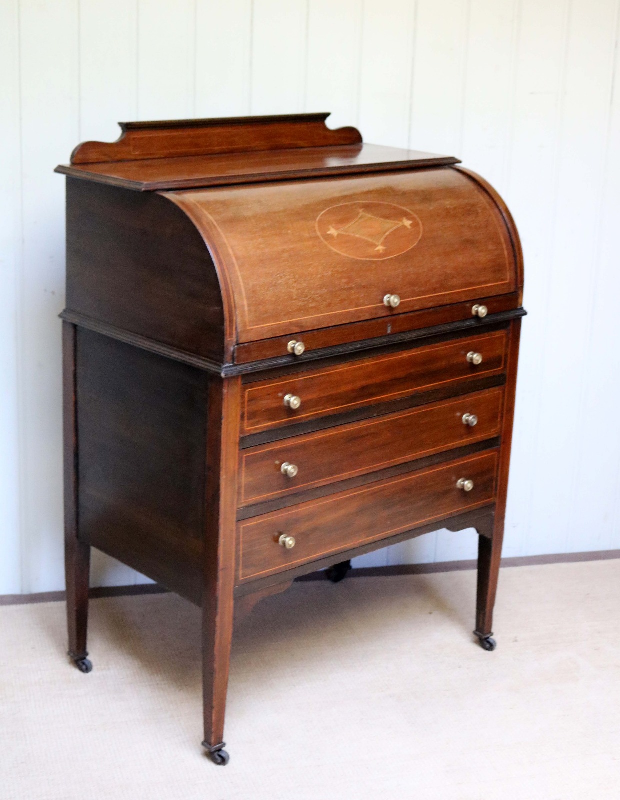 Edwardian Mahogany Roll Top Bureau (1 of 1)