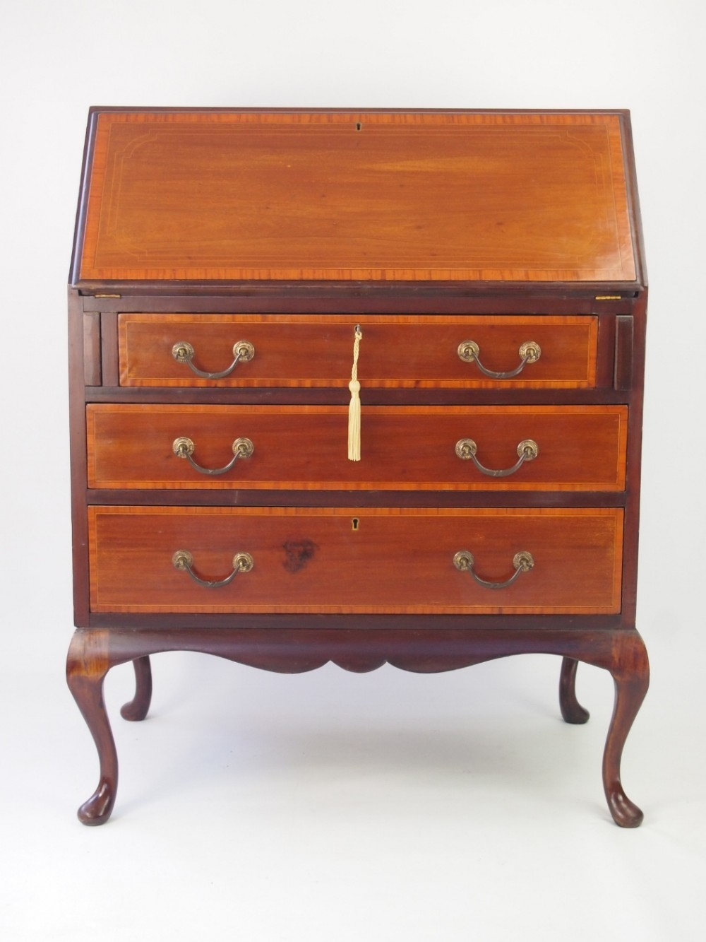 Edwardian Mahogany & Satinwood Banded Bureau c.1910 (1 of 1)