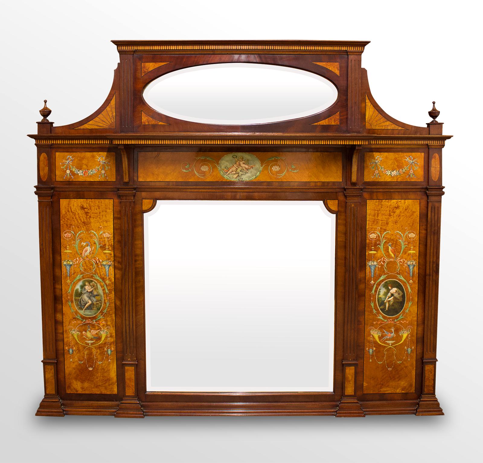 Edwardian Mahogany & Satinwood Painted Overmantel Mirror