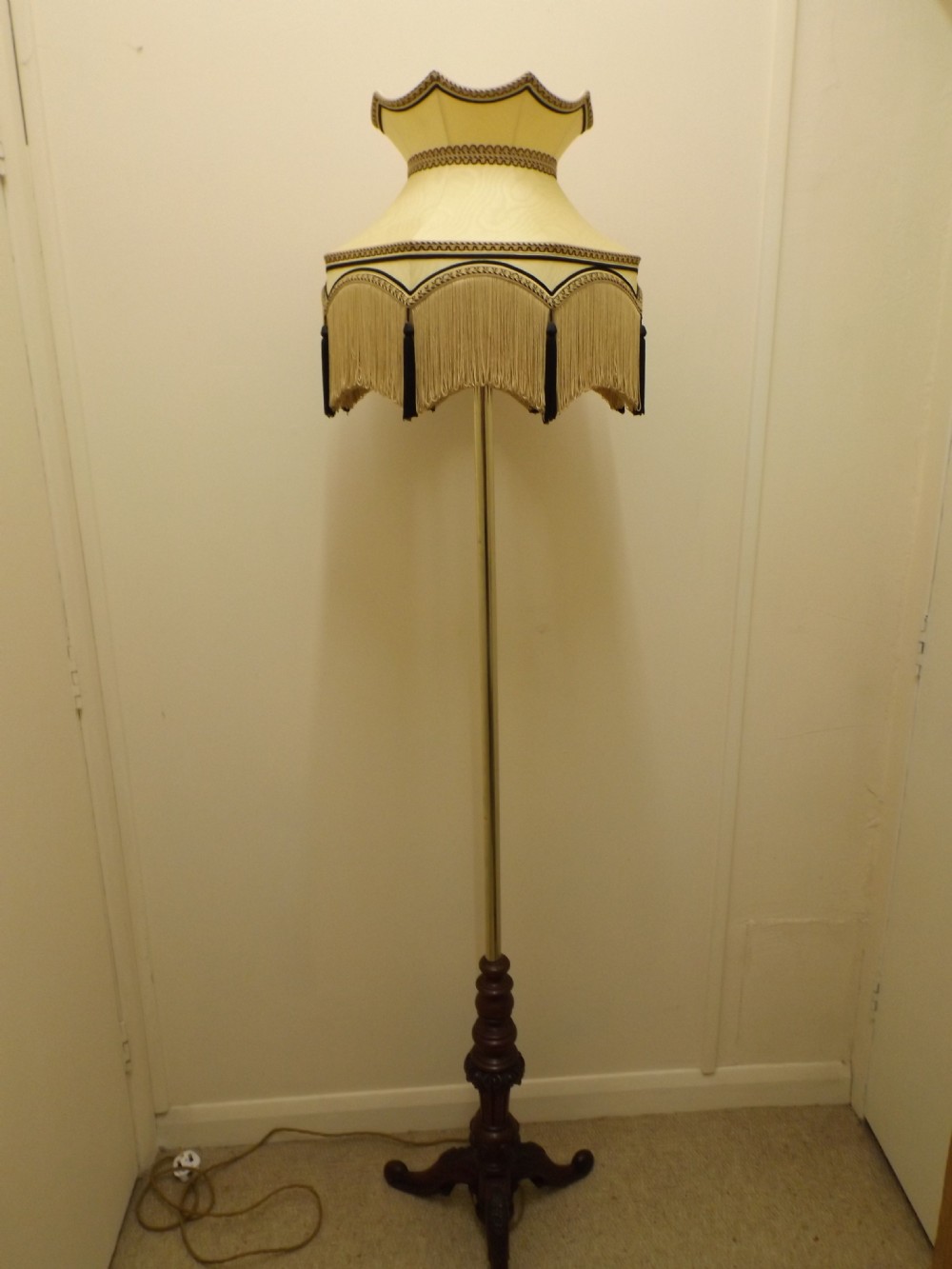 Edwardian Mahogany Standard Lamp Stand with "Downton" Shade.