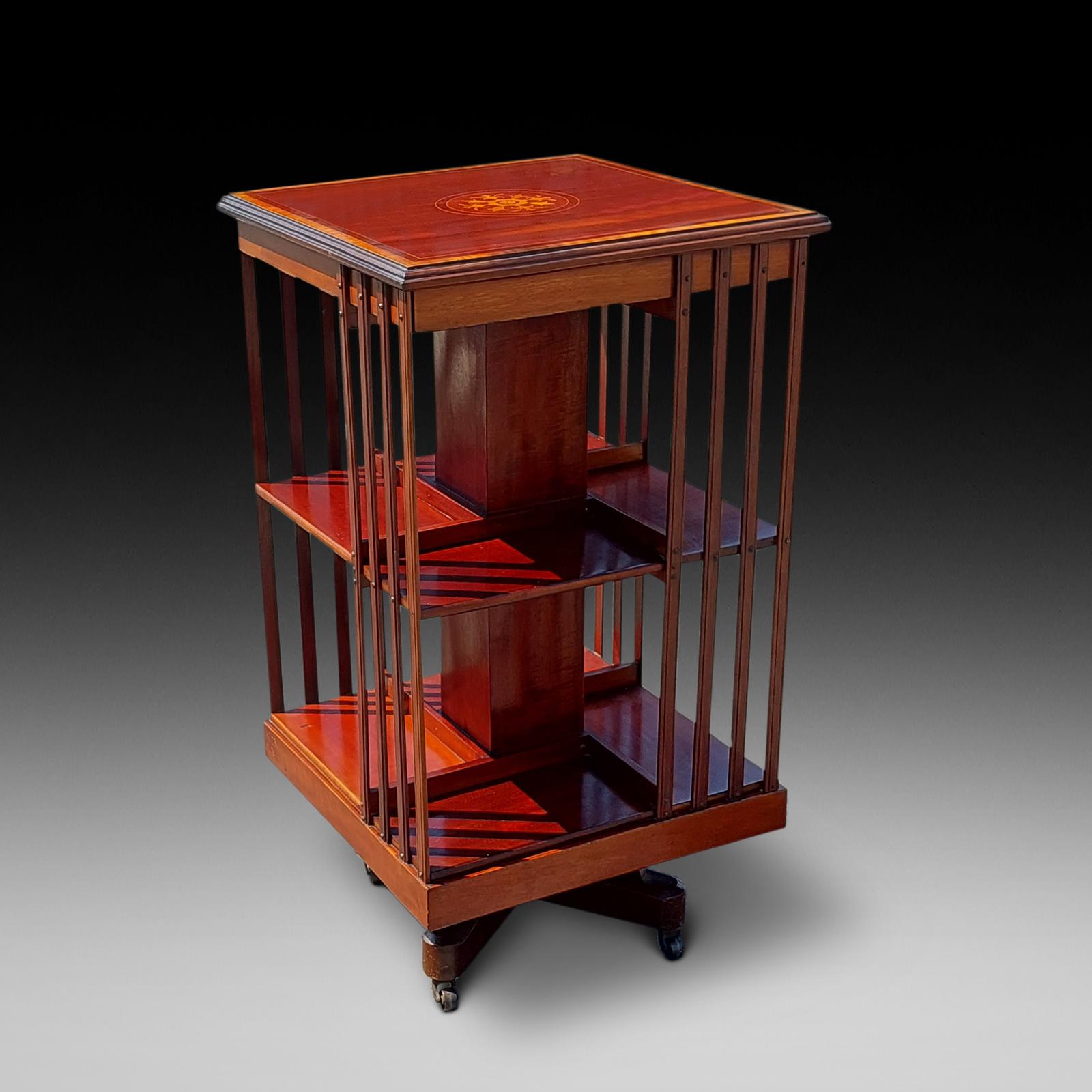 Edwardian Mahogany Sycamore Inlaid Revolving Bookcase