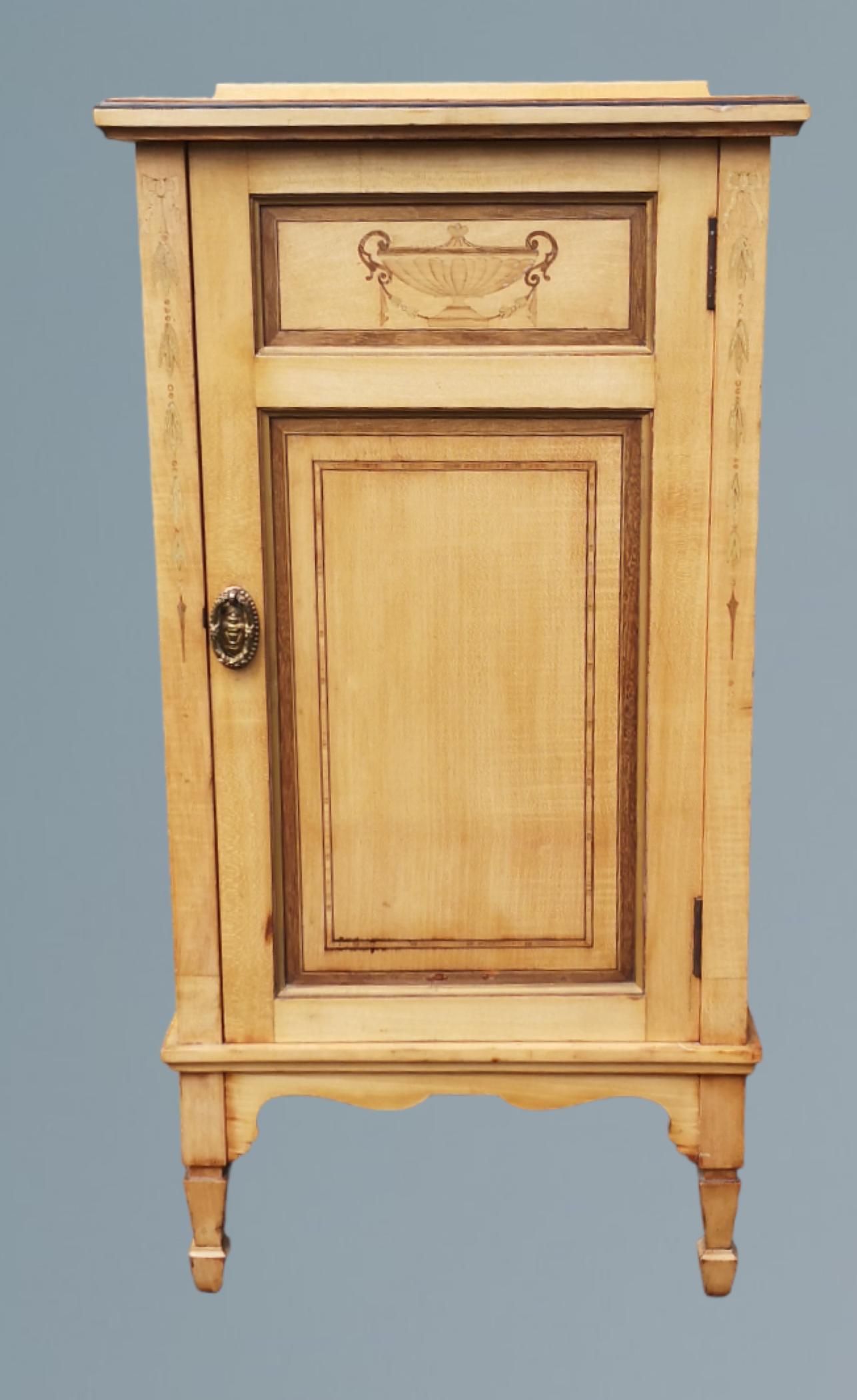 Edwardian Maple and Marquetry Inlaid Bedside Cupboard