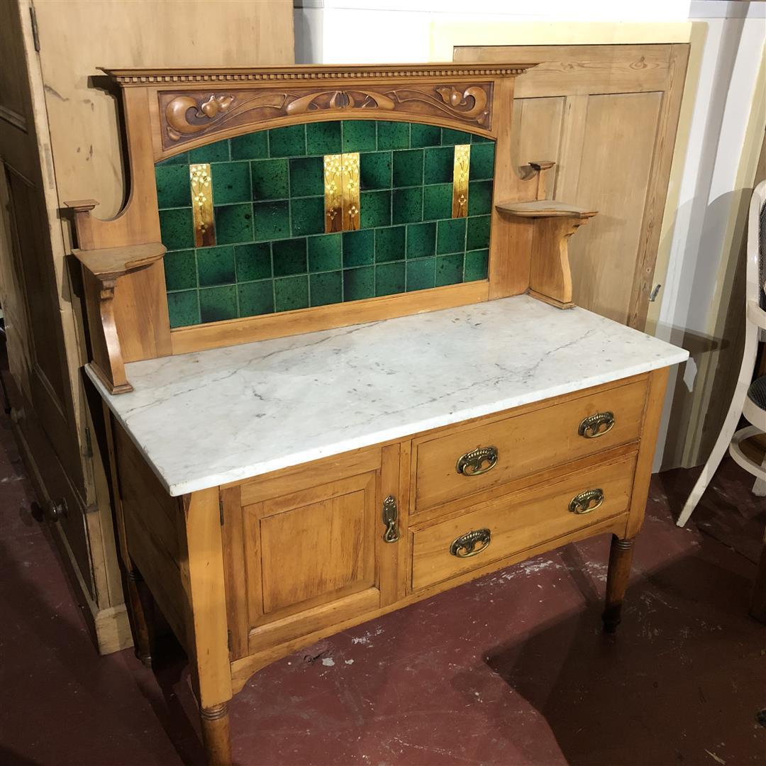Edwardian Maples & Co Satinwood Washstand Marble Top Tiled Splashback