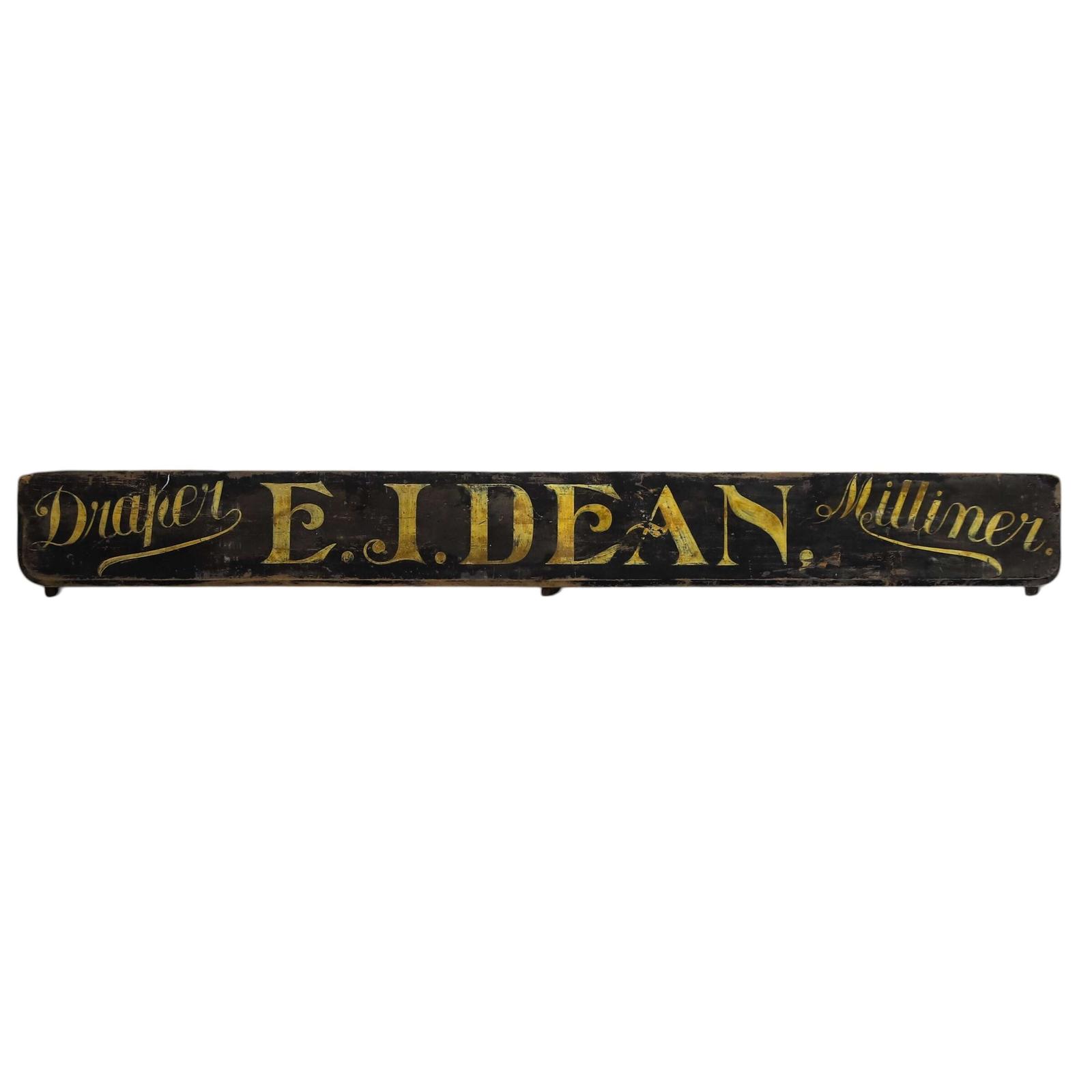 Edwardian milliner & draper’s shop sign, hand‑painted on pine with bold lettering and rich patina - A rare survivor of early 20th‑century commercial craft