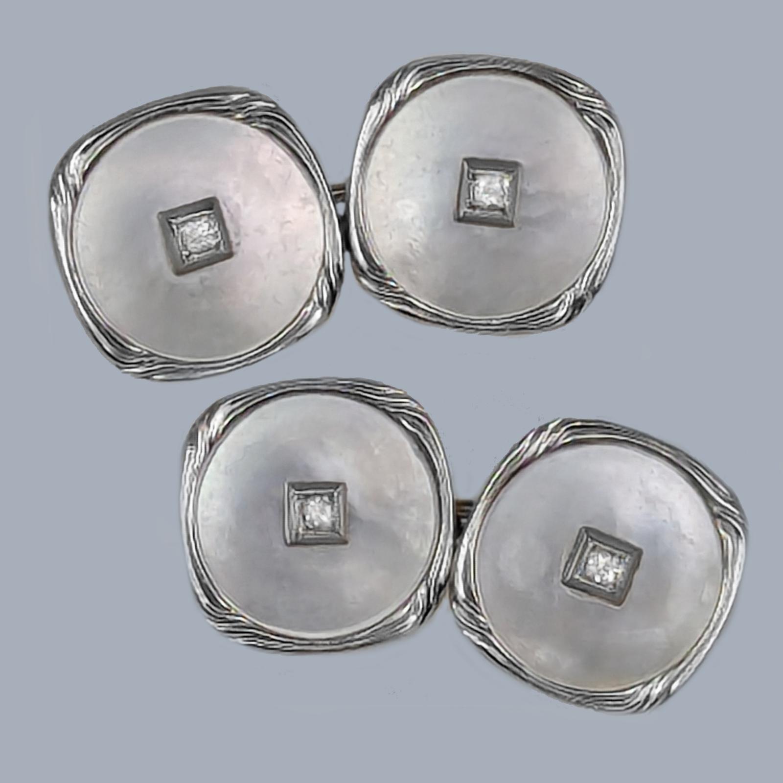 Edwardian Mother of Pearl Diamond Cufflinks 18ct Gold & Platinum Antique Cufflinks