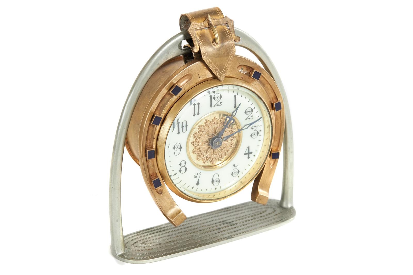 Edwardian Novelty Gilt Brass & Nickel Plated Stirrup Clock