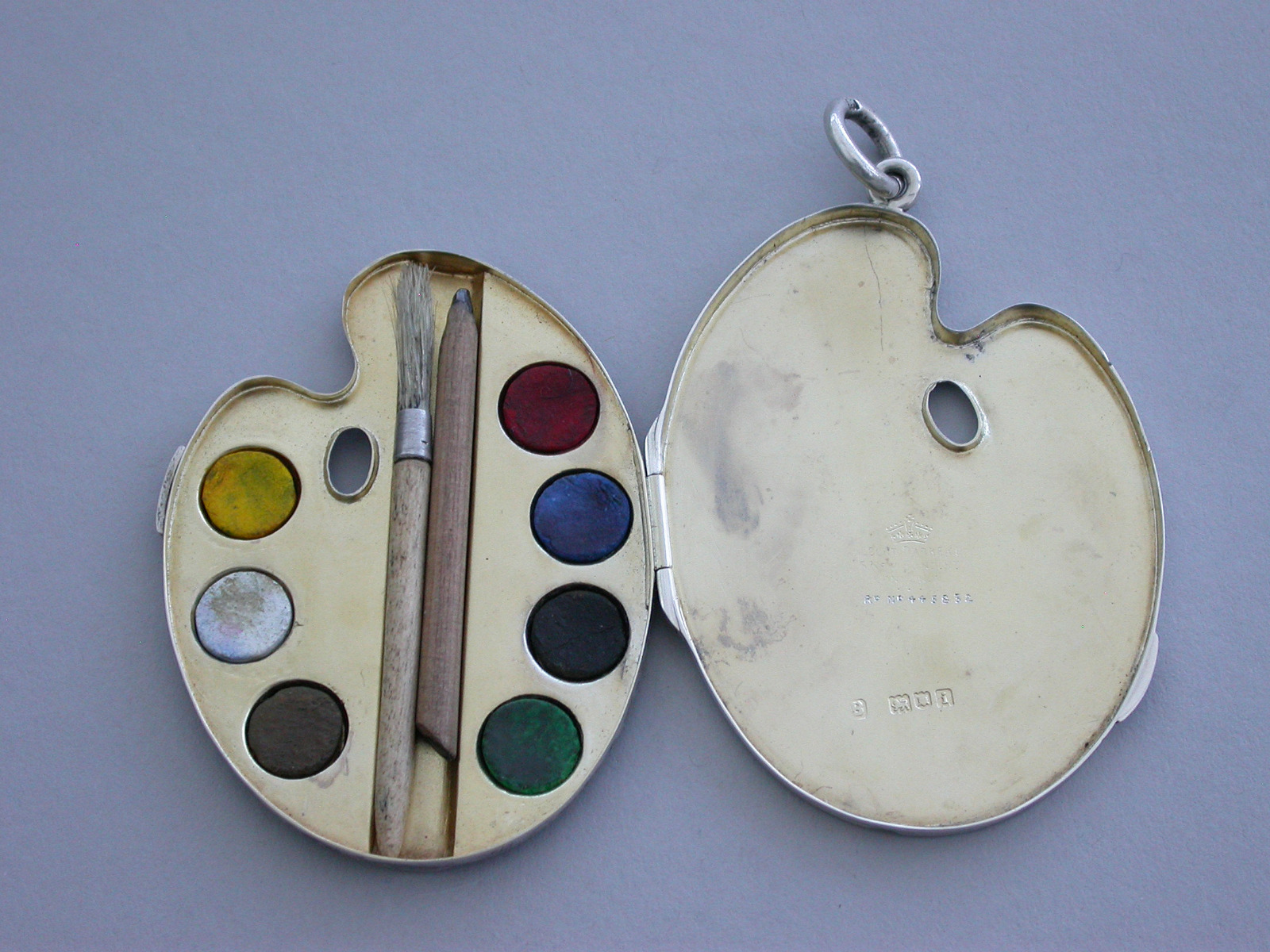 Edwardian Novelty Silver Artists' Palette Paint Box by Albert Barker, London 1904