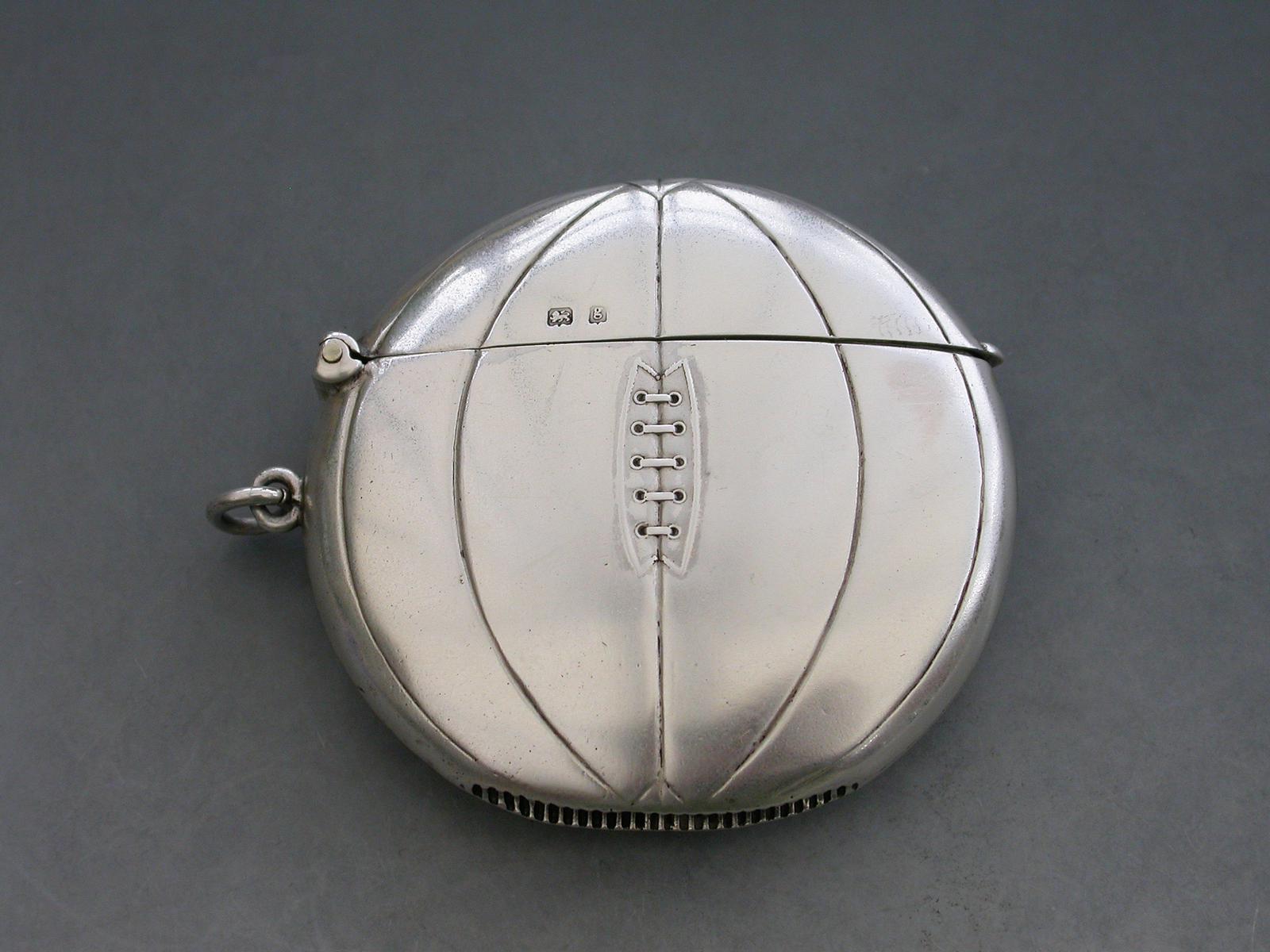 Edwardian Novelty Silver Association Football Vesta Case, by Henry Williamson Ltd, Birmingham, 1906