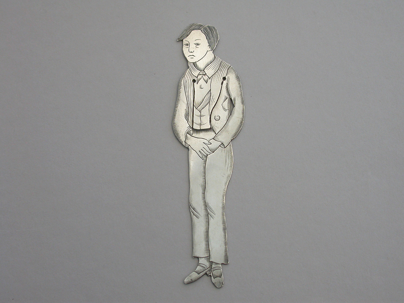 Edwardian Novelty Silver Figural Bookmark of Charles Dickens Character 'David Copperfield' by J F Fradley, New York c.1901 - 1910