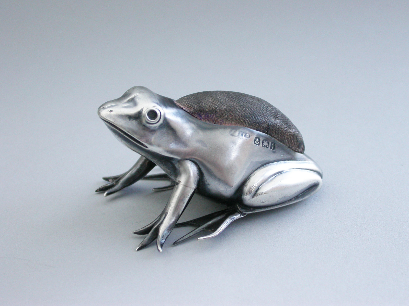 Edwardian Novelty Silver Frog Pin Cushion by Adie & Lovekin, Birmingham, 1908