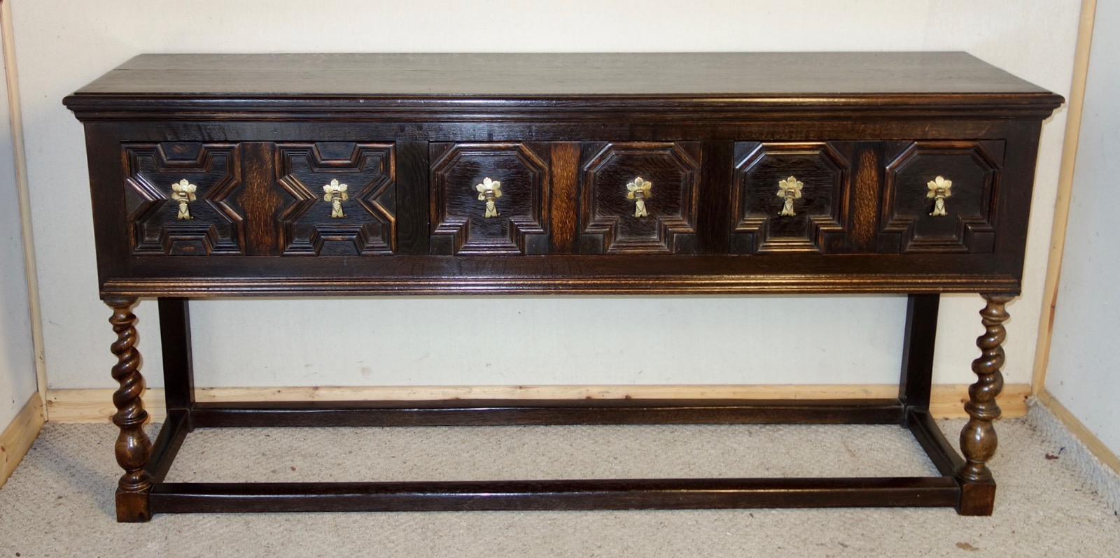 Edwardian Oak 3 Drawer Geometric Dresser Base