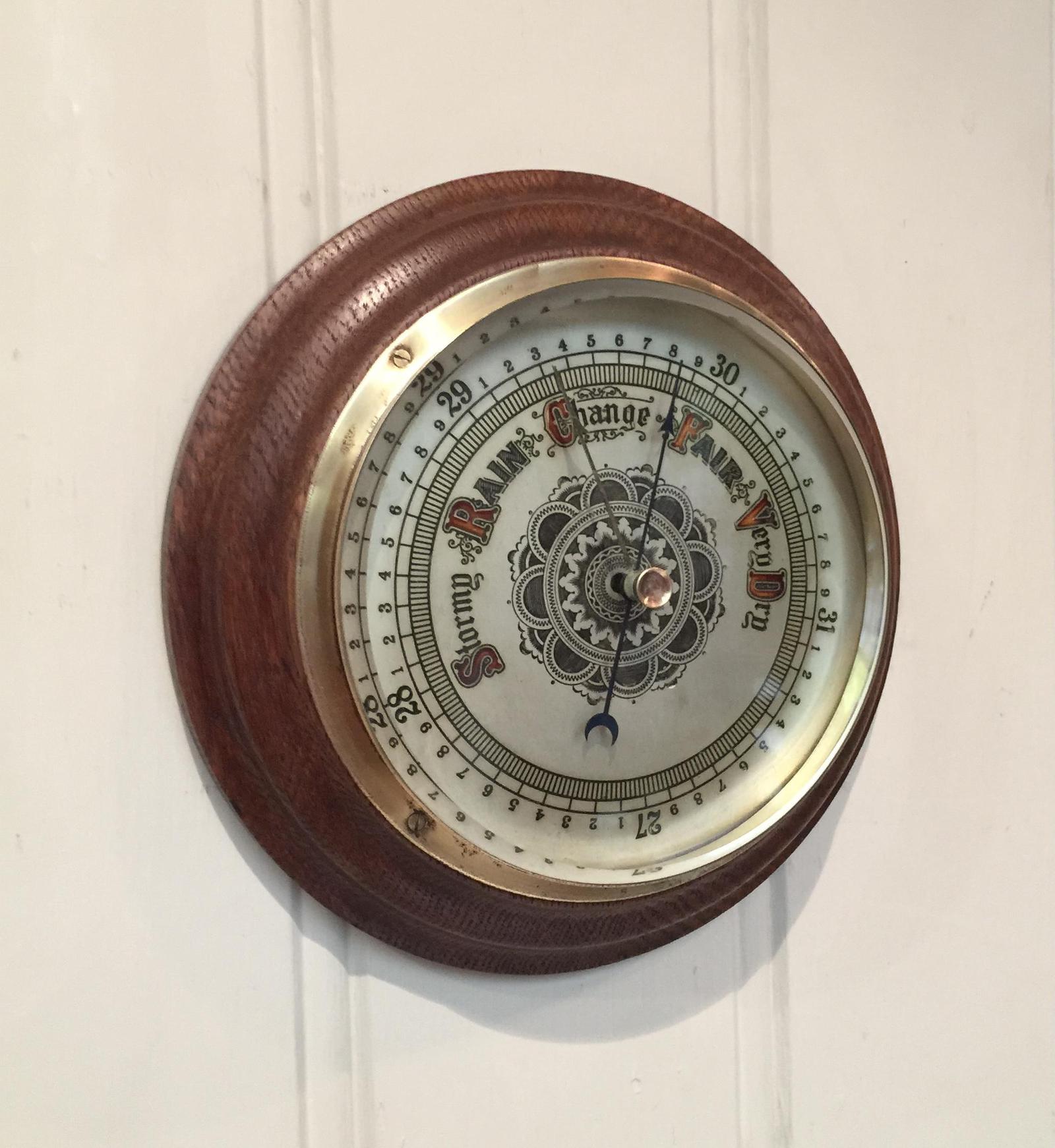 Edwardian Oak Aneroid Barometer c.1901 (1 of 8)