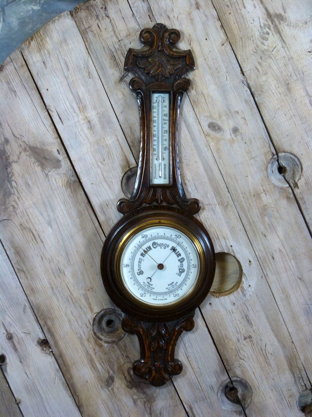 Edwardian Oak Aneroid Barometer c.1910