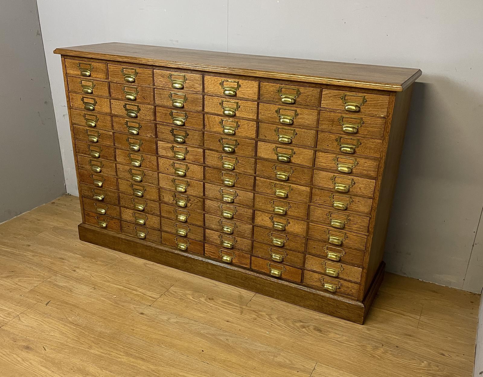 Edwardian Oak Bank of 66 Filing Drawers with Original Brass Fittings