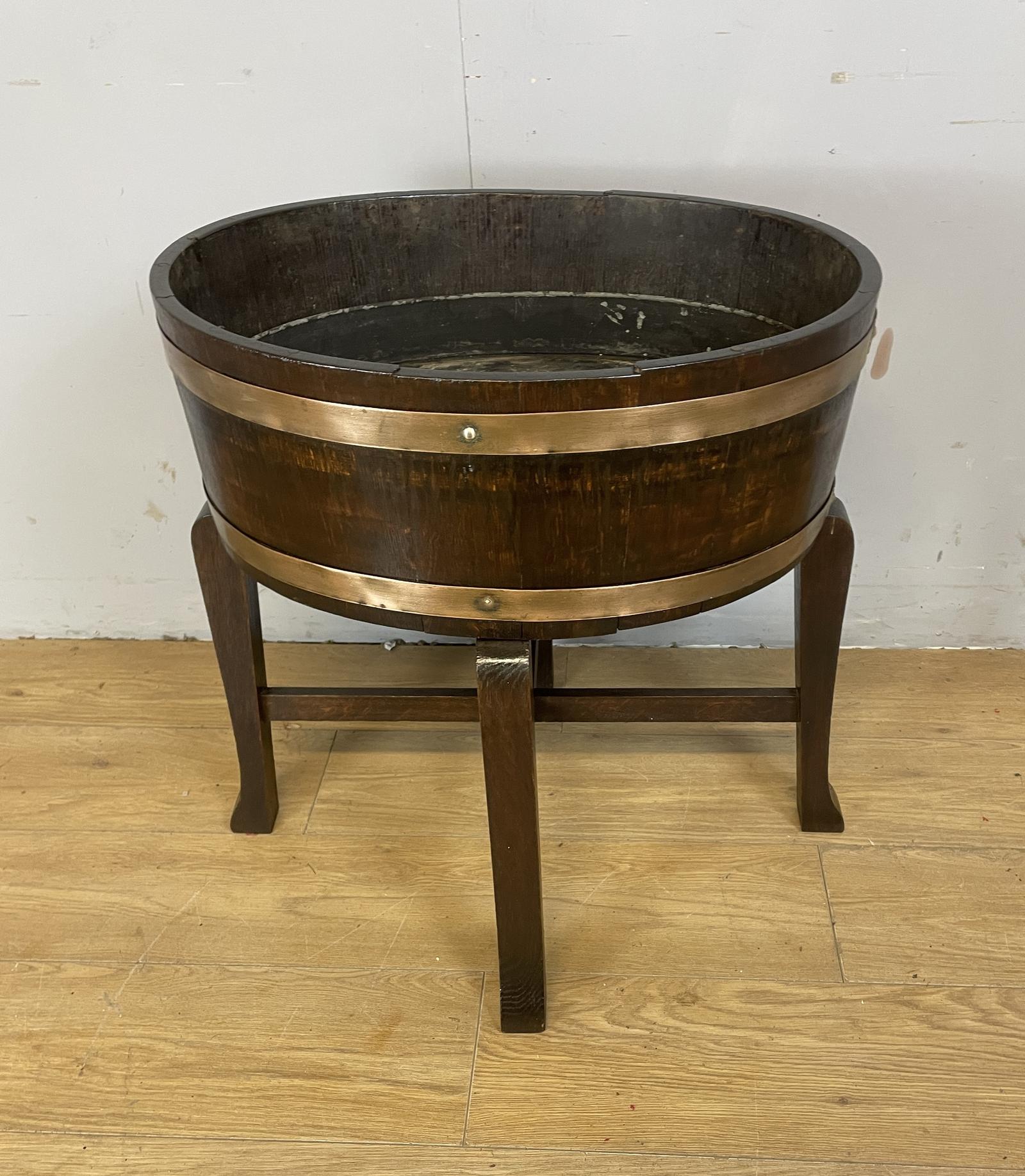 Edwardian Oak Coopered Planter on Stand by R A Lister