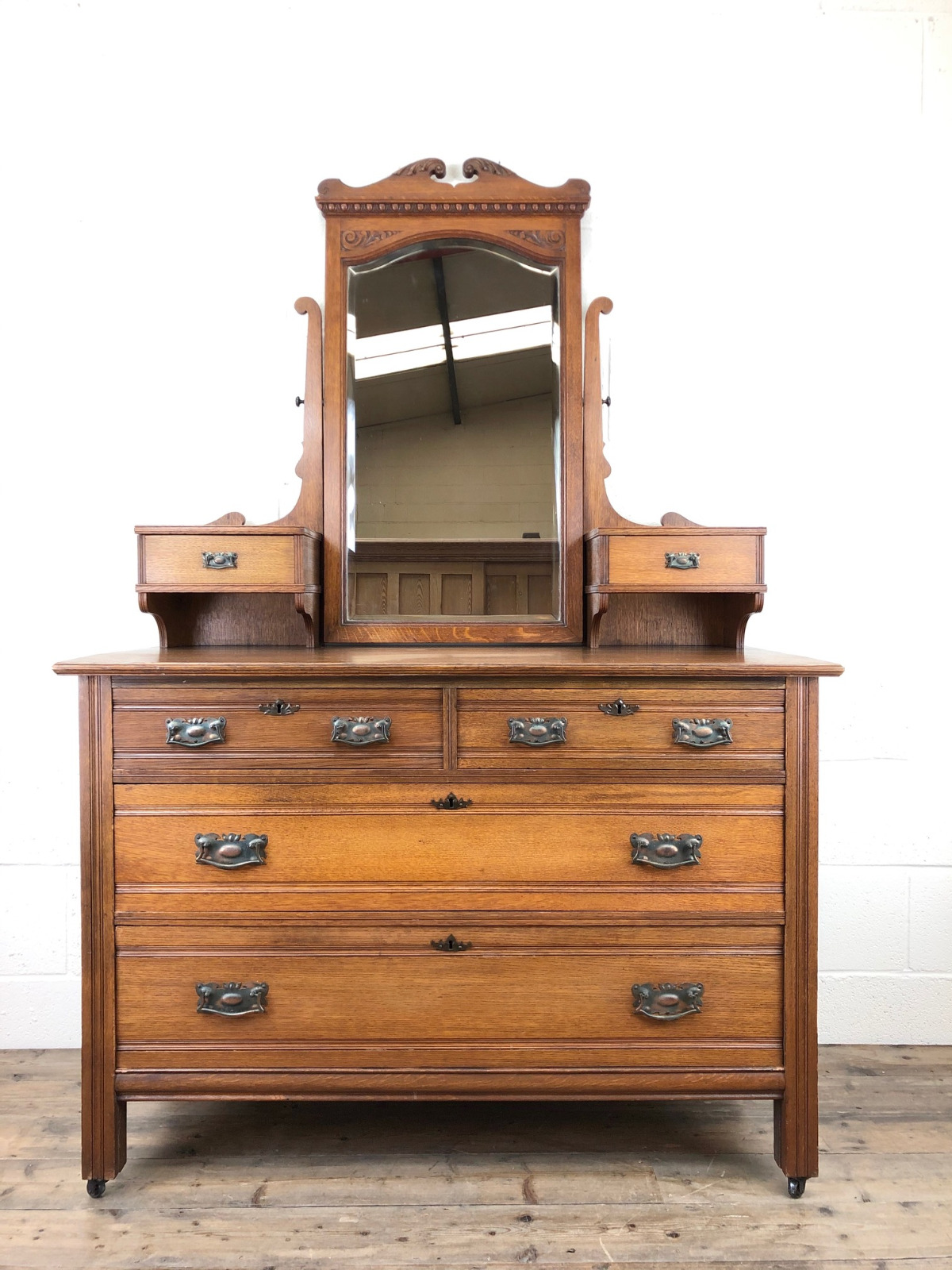 Edwardian Oak Dressing Table Chest with Mirror (1 of 11)